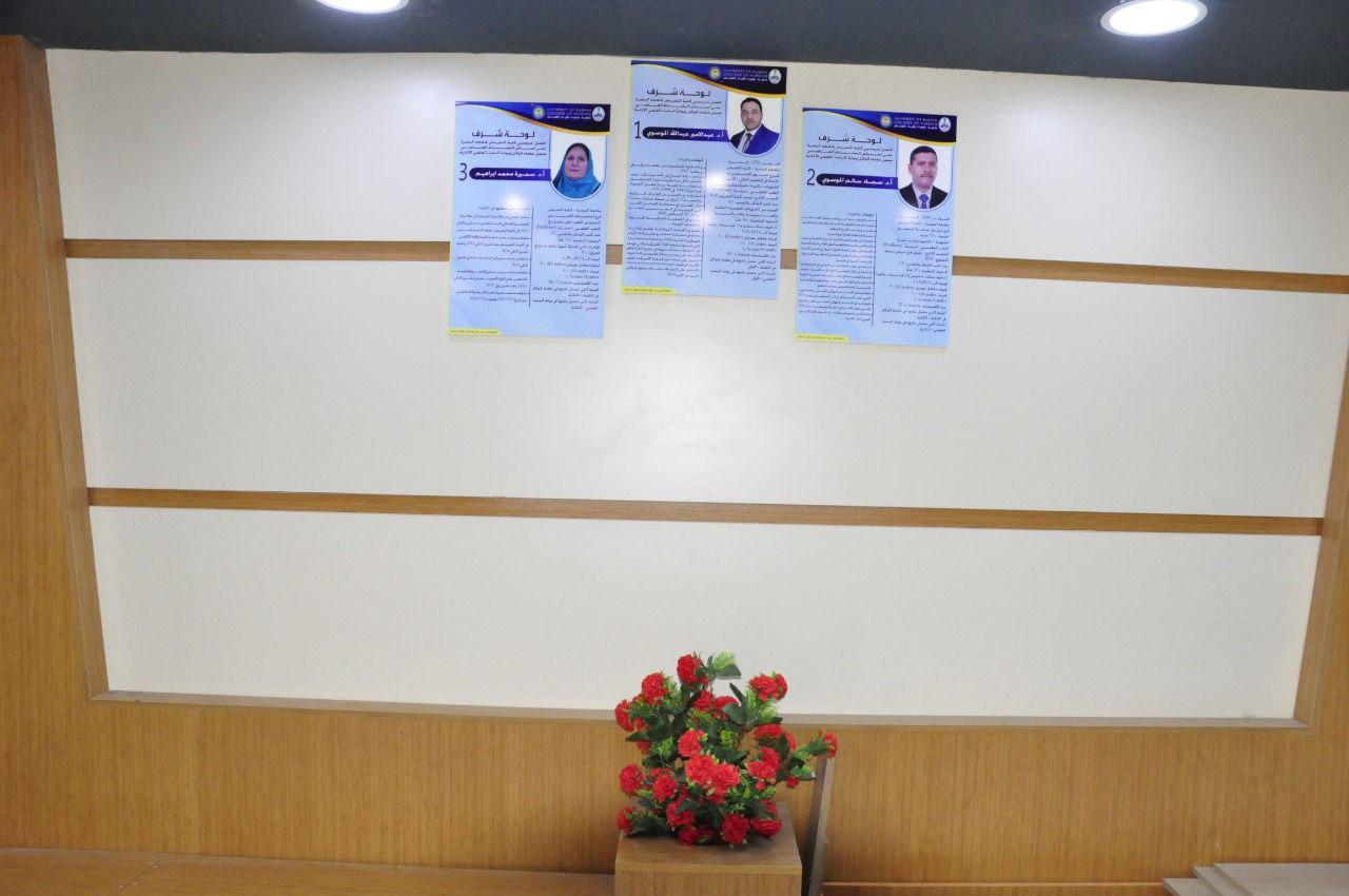 College of Nursing Announcements Alaa Al Husseini Under the auspices of the Deanship of the College of Nursing at the University of Basra, a board of honor is presented to its distinguished teachers, and under the direct supervision of Professor Dr. The honor board includes pictures and a summary of their scientific careers, in gratitude for the academic foundations they provided at the College of Nursing at the University of Basra. These panels were also presented as gratitude to those who left a mark in the College of Nursing and those who had a great impact on the college, interspersed with success and fame, and holders of higher degrees from the sons of our college and the distinguished among them, and they played a major role in building an integrated and successful society. Al-Moussawi mentioned that the honor board is one of the university norms that the university revives, and it represents a facade of pride for its cadres and an incentive for the rest of the other affiliates. |