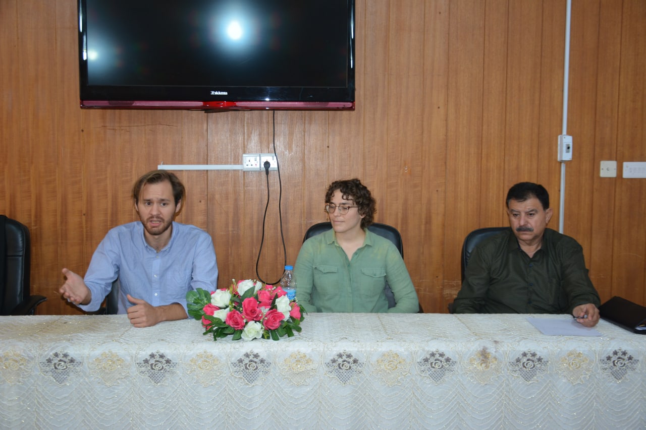 The College of Education for the Human Sciences hosts researchers from universities in the United States. The Information and Public Relations Unit within the framework of mutual scientific cooperation between universities and openness to world universities hosted the History Department in the two colleges of visiting professor Dr. Camille Cole specializing in Middle Eastern history from New York University and PhD student (Gabriel Young) from the University of Cambridge, where an expanded scientific symposium was held that included history professors and graduate students in the presence of the college's scientific assistant, A.D. Saad Abbas Al-Asadi and some faculty members from other departments, under the direction of D. Saad. Jaafar Abdel-Zadim al-Mansour, on Wednesday, 10/11, 2021, 10:30 am. During the seminar, among other things, was discussed: 1- The possibility of cooperation between Iraqi and foreign universities in the subject of postgraduate studies. 2- College professors are willing to provide advice and joint supervision to graduate students in other universities. The ability of the college library to provide resources needed by foreign students related to local topics they study. 4- Exchange of scientific visits between professors at universities. 5- The exchange of scientific activities through the scholarly writings of the professors. 6- Professors provide scientific lectures via electronic platforms for foreign university students. 7- Consider how Iraqi students can obtain the resources they need for their studies that are available at international universities. 8- Professors are ready to cooperate in the field of scientific research and prepare joint research. The visiting gentlemen then met with the Dean of the College, Prof. Hamid Siraj Jaber, who expressed his pleasure and support for this scientific initiative and ordered that the possibilities be developed