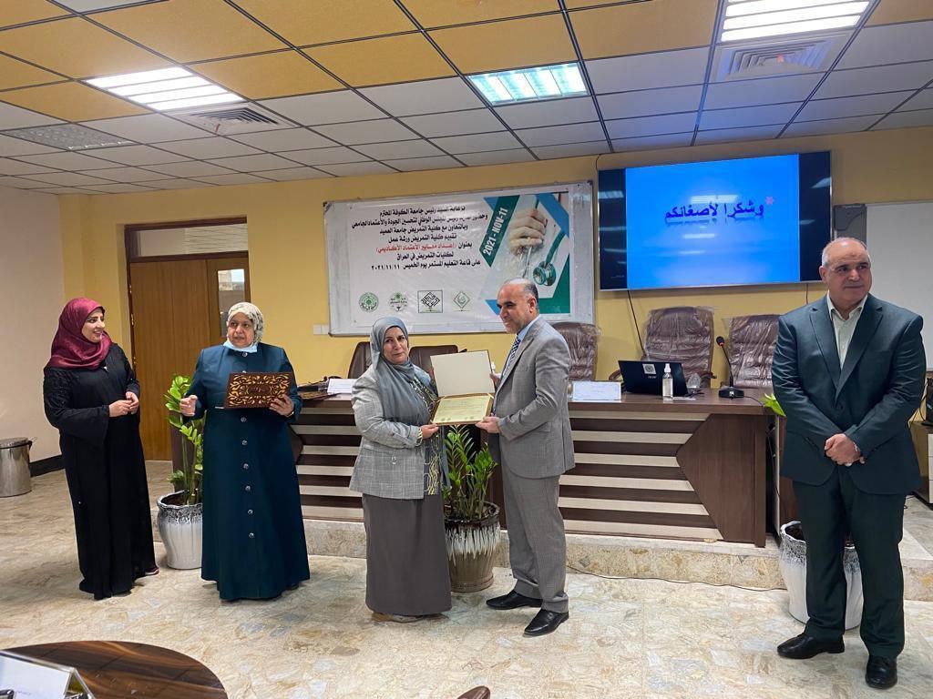 Head of the Fundamentals of Nursing Branch participates in the academic accreditation workshop at the University of Kufa The teacher, Dr. Sundus Baqir Daoud, head of the Fundamentals of Nursing Branch at the College of Nursing at the University of Basra, obtained a certificate of participation as a member and participant in the academic accreditation workshop held at the University of Kufa, where the certificate was handed over by Mr. Chairman of the Nursing Colleges Deans Committee, Professor Dr. Ali Karim Khudair, Dean of the College of Nursing, University of Karbala, and in the presence of the President of Babylon University, Professor Dr. Qahtan Al-Jubouri, and Dean of the College of Nursing, University of Kufa, Prof. Dr. Rajha Abdul Hassan Hamza. The workshop aimed to define the national accreditation criteria for nursing colleges and how to apply these criteria to obtain national accreditation and then academic accreditation. |