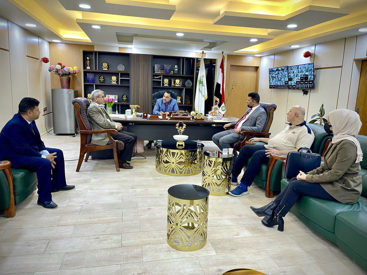 The Dean of the College of Nursing at the University of Basra received Prof. Dr. Abdameer Abdullah al-Musawi, Dean of the Faculty of Medicine of Al-Zahra, Prof. Dr. Mazen Hawaz, and the Administrative Assistant at the Faculty of Medicine at al-Zahra University, Assistant Professor Haitham Ali Hussain. The meeting was attended by Dr. Hisham Hussein, the administrative assistant in the Faculty of Nursing, and Prof. Dr. Sajjad Salem, President Community Health Nursing Branch and the parties discussed ways of cooperation between the two colleges at the scientific and administrative levels, and it was agreed on some matters to exchange the available resources between the two colleges from the halls and scientific laboratories for the purpose of facilitating the process of teaching and training students. At the service of Al-Zahra College of Medicine. On the sidelines of the meeting, a letter of thanks and appreciation was delivered to Dr. Haitham for his work as a member of the Promotions Subcommittee at the College of Nursing. At the end of the meeting, Professor Hawaz expressed his sincere thanks to the Deanship of the College of Nursing for their good reception and hospitality, wishing more cooperation between the two colleges and further progress for the College of Nursing in the service of our dear university. |