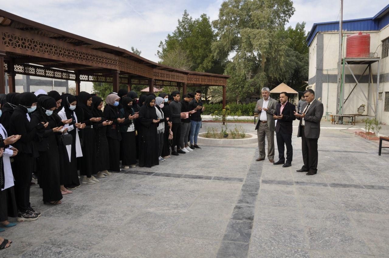 College of Nursing Announcements Alaa Al Husseini / kinooz Ali The College of Nursing at Basra University organized this morning, Tuesday (12/8/2021), a stand in solidarity and denunciation of the criminal act that affected our city, Basra Al-Fayhaa, in the presence of Prof. stages. The solidarity vigil opened with the recitation of any verse from the Holy Qur’an, and then the recitation of Surat Al-Fatihah, in sympathy for the righteous martyrs who fell treacherously, and raising the palms of prayers for the healing of the wounded. The sit-down included enthusiastic words by professors and students that reflected the spirit of high cohesion between the spectra of Iraqi society, rejecting sectarianism and denouncing the crimes of ISIS gangs. |