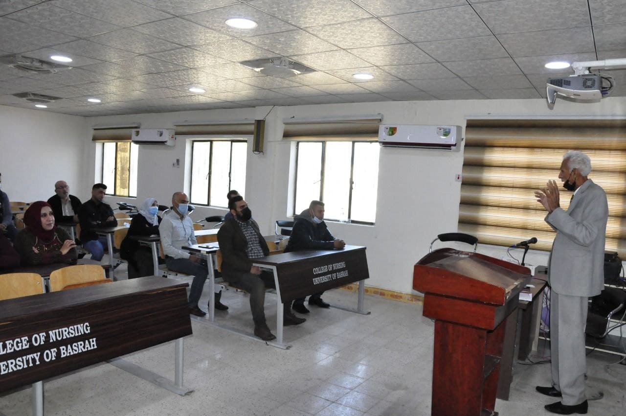 Under the patronage of Prof. Dr. Saad Shaheen Hammadi, President of the University of Basra, and under the direct supervision of Prof. Dr. Abdul-Amir Abdullah Al-Moussawi, Dean of the College of Nursing at the University of Basra This morning, Monday, 12/13/2021, our college organized an educational symposium on public safety and an explanation of the correct ways to use the types of firefighters, in the presence of the teacher, Dr. The symposium dealt with introducing the aspects related to safety and prevention to spread the culture of evacuating buildings and dealing with fires and introducing the types of extinguishing tools and how to deal with them in cases of accidents. The lecture also touched on the procedures that must be followed in case of accidents, the evacuation plan in case of emergency, in addition to the importance of having a safety official.