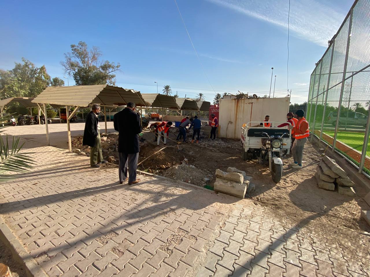 In light of the college’s urban plans represented in optimizing the exploitation of the spaces and the reclamation of agricultural lands for a clean green environment that enjoys oxygen, the service cadres, under the direct supervision of the respected Brigadier General, Professor Dr. And showing the college gardens in the most beautiful appearance, including aspects of reconstruction, restoration and paving of corridors,