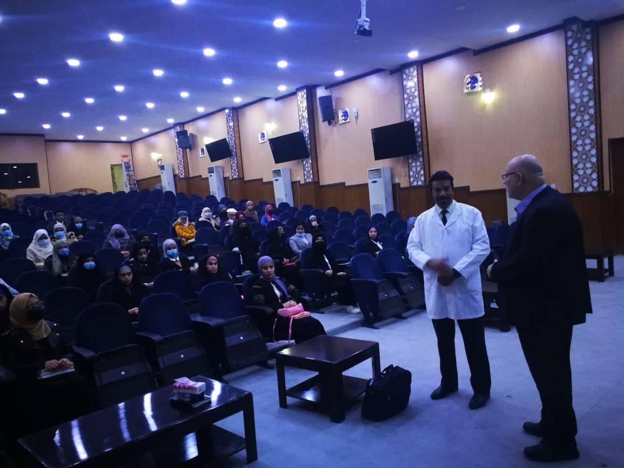 College of Nursing Announcements Alaa Al-Husseini / Kinooz Ali As part of a series of follow-ups shown by the teacher, Dr. Hisham Hussein Abdel Raouf, the assistant dean for administrative affairs, and in the presence of the assistant professor, Dr. Wasfi Zaher Abdel Ali And within the framework of joint cooperation between the College of Nursing at Basra University and the College of Arts, Department of Translation, University of Basra The teacher, Dr. Hisham Hussein Abdel Raouf, the assistant dean for administrative affairs at the College of Nursing at the University of Basra, visited on Wednesday 5/1/2022. Students of the first stage and on the hall of the Faculty of Arts, Department of Translation, University of Basra He was briefed on their needs and requirements, and also stressed the need to adhere to all preventive measures to prevent the spread of Covid-19 disease. This follow-up came to ensure the progress of the educational process in accordance with the requirements of sobriety and scientific quality and to overcome obstacles in front of our dear students, wishing them continued success and success. |