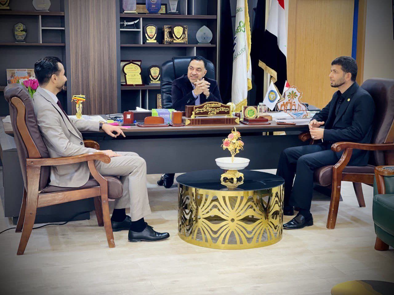 | College of Nursing Announcements Alaa Al-Husseini / Kenooz Ali Reception on Monday morning, 1/16/2022 Prof. Dr. Abdul-Amir Abdullah Al-Musawi, Dean of the College of Nursing at Basra University, Dr. Shukri Shaker, Director of Basra University Student Affairs, and the meeting was attended by the teacher Dr. Adel Ali Hussein, Associate Dean for Scientific Affairs. Through the visit, the Registration and Student Affairs Division at the college was inspected, and the files of new students were followed up and directed, and to determine the requirements Registration and the nature of the procedures taken by the college in terms of reception and registration for evening studies Dr. Shukri Shaker praised the efforts of the Deanship of the College of Nursing at the University of Basra, represented by Prof. Dr. Abdul-Amir Abdullah Al-Moussawi, Dean of the College, to implement the directives of the Presidency of the University and the Ministry of Higher Education and Scientific Research and to expedite the registration of new students and start studying for the new academic year 2021-222. The students of the Deanship of the College for the hospitality and reception and commended the achievements of the College. For its part, the College of Nursing awarded the College Shield More about this source textSource text required for additional translation information |
