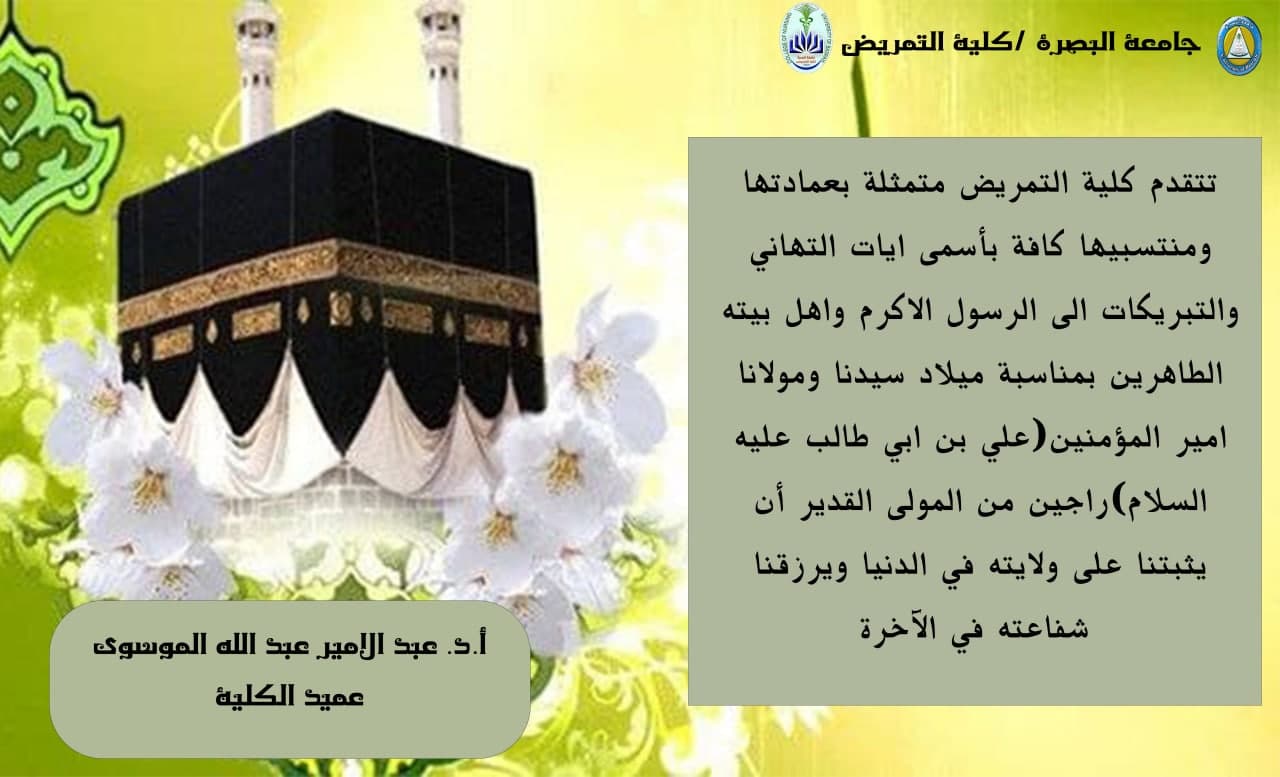 Congratulations to the Dean of the College of Nursing on the occasion of the birthday of Imam Ali bin Abi Talib (peace be upon him)
