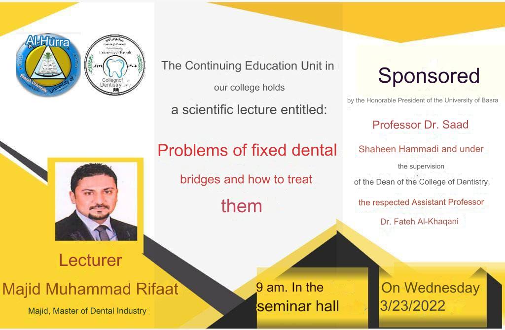 "The Continuing Education Unit in our college holds a lecture entitled "problems of fixed bridges of teeth and the way to treat them