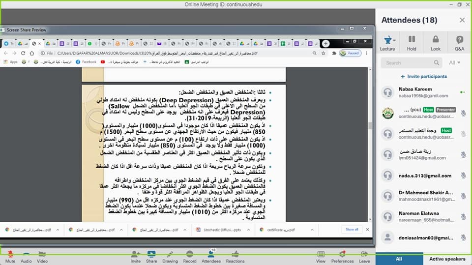 The Continuing Education Unit at the College of Education organized a workshop on the impact of climate change on changing the number of days of survival of shallow and deep Mediterranean depressions for the period (1950-2016) over Iraq