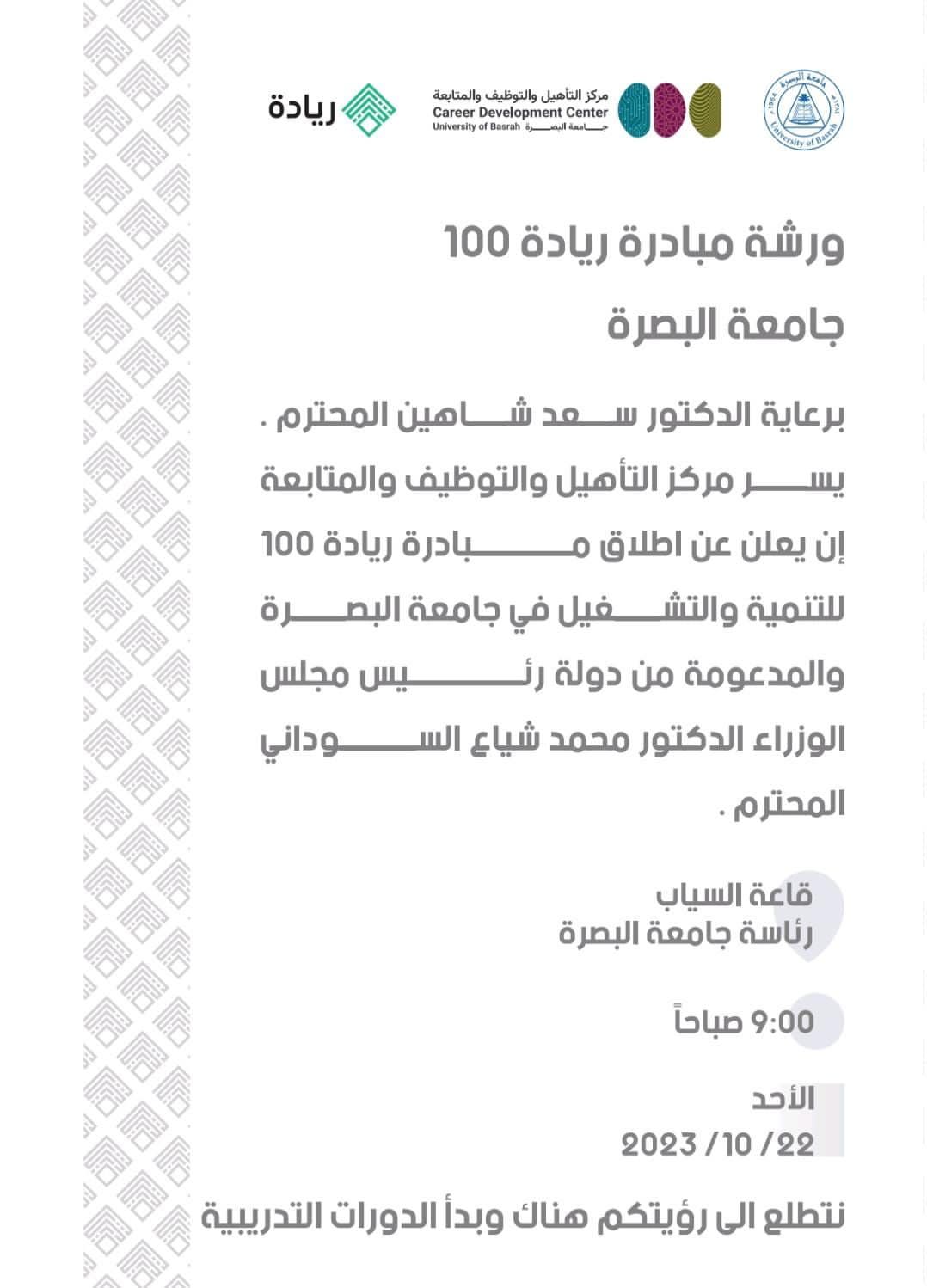 Invitation: We are honored and pleased to have you attend the largest leadership initiative in Iraq and at the University of Basra *Entrepreneurship 100*