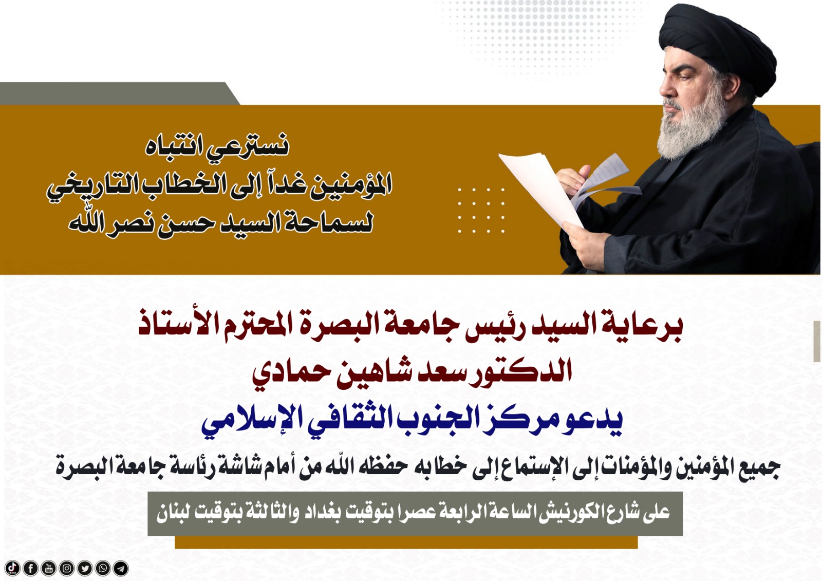 The Southern Islamic Cultural Center invites you to listen to the historic speech of His Eminence Sayyed Hassan Nasrallah