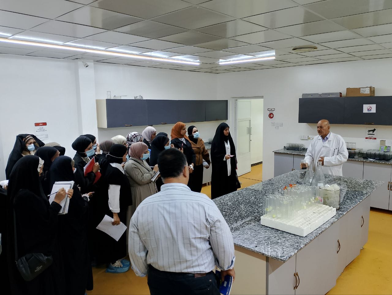 During the visit, Professor Dr. Khayon Ali Mohsen provided a comprehensive explanation of the various steps and stages involved in the tissue culture of palm trees. Additionally, researchers Dr. Muntaha Abdul Zahra Ati and Dr. Ansam Mahdi Saleh offered detailed insights into the laboratories and tissue culture techniques employed at the centre.