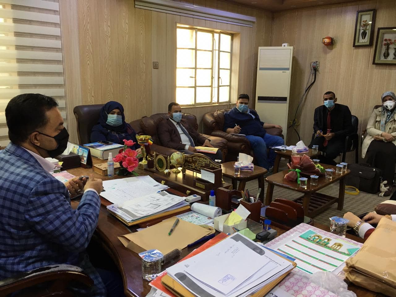 | Prof. Dr. Abd al-Amir Abdullah al-Mousawi, Dean of the College met with the evening electronic examination committee and stressed during the meeting to raise the committee’s readiness to complete its work and invest the current time before the exams began and to check all exam records. He also confirmed that the examination committee should be equipped with all the technical or software materials it needs and work in the spirit of one team To accomplish what is required. |