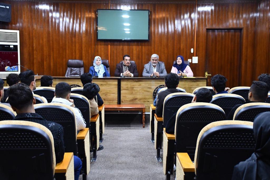 The meeting, which was moderated by Dr. Abdel Mohsen Abdel Hussein Khudair, Head of the Psychological Counseling Department, Dr. Abdel Karim Zayer Rassan, Dr. Tahani Anwar Ismail, and Dr. Hana Sadiq Karim, Director of the Center for Educational Guidance and Psychological Care, included a statement of the importance of the counseling role in overcoming the difficulties faced by students and introducing them to the most important data for living. In the internal sections, the pros and cons of housing in the internal section were examined, and the lecturers touched on the variables in the transitional stage from school life to university life.