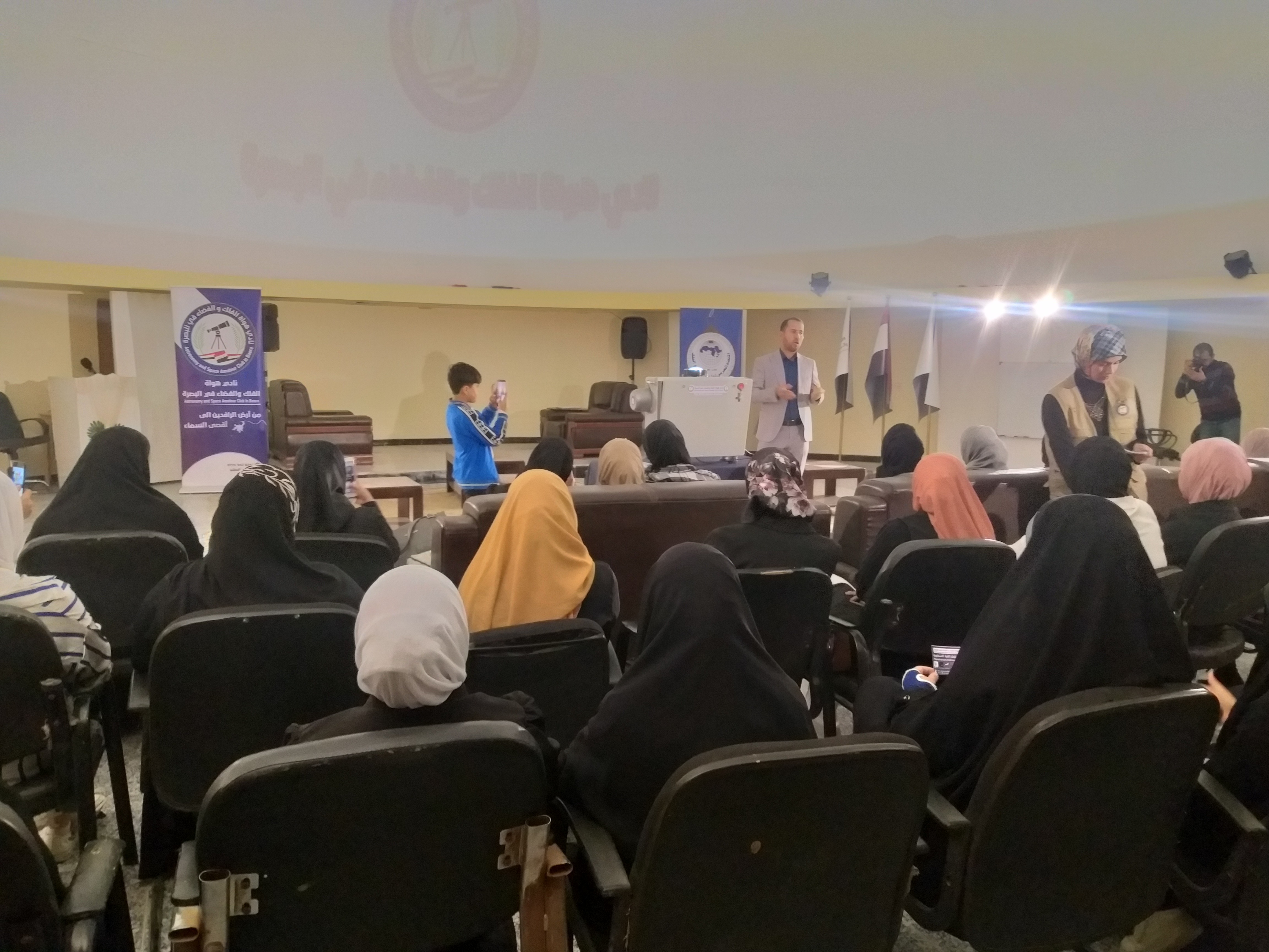 The scientific presentation presented by the Space and Astronomers Club in Basra to the students of the Department of Geography at the Faculty of Education for Girls, which included a group of scientific films specialized in astronomy, astronomical observation and the journey of the depths of the universe.