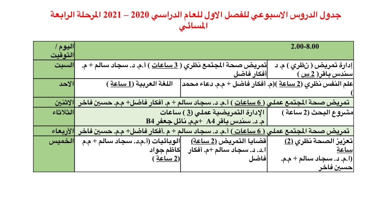 (The practical and theoretical evening study schedule for the fourth stage (2020-2021