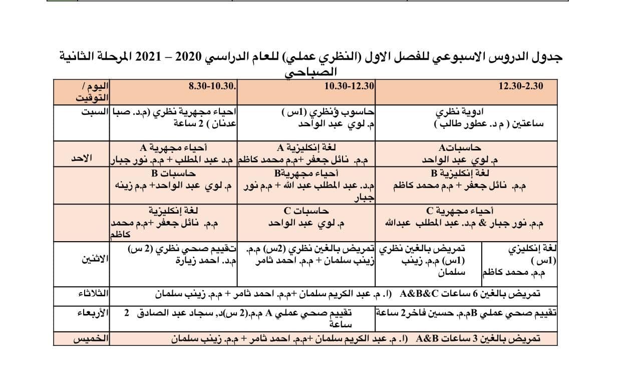(The practical and theoretical morning study schedule for the second phase (2020-2021