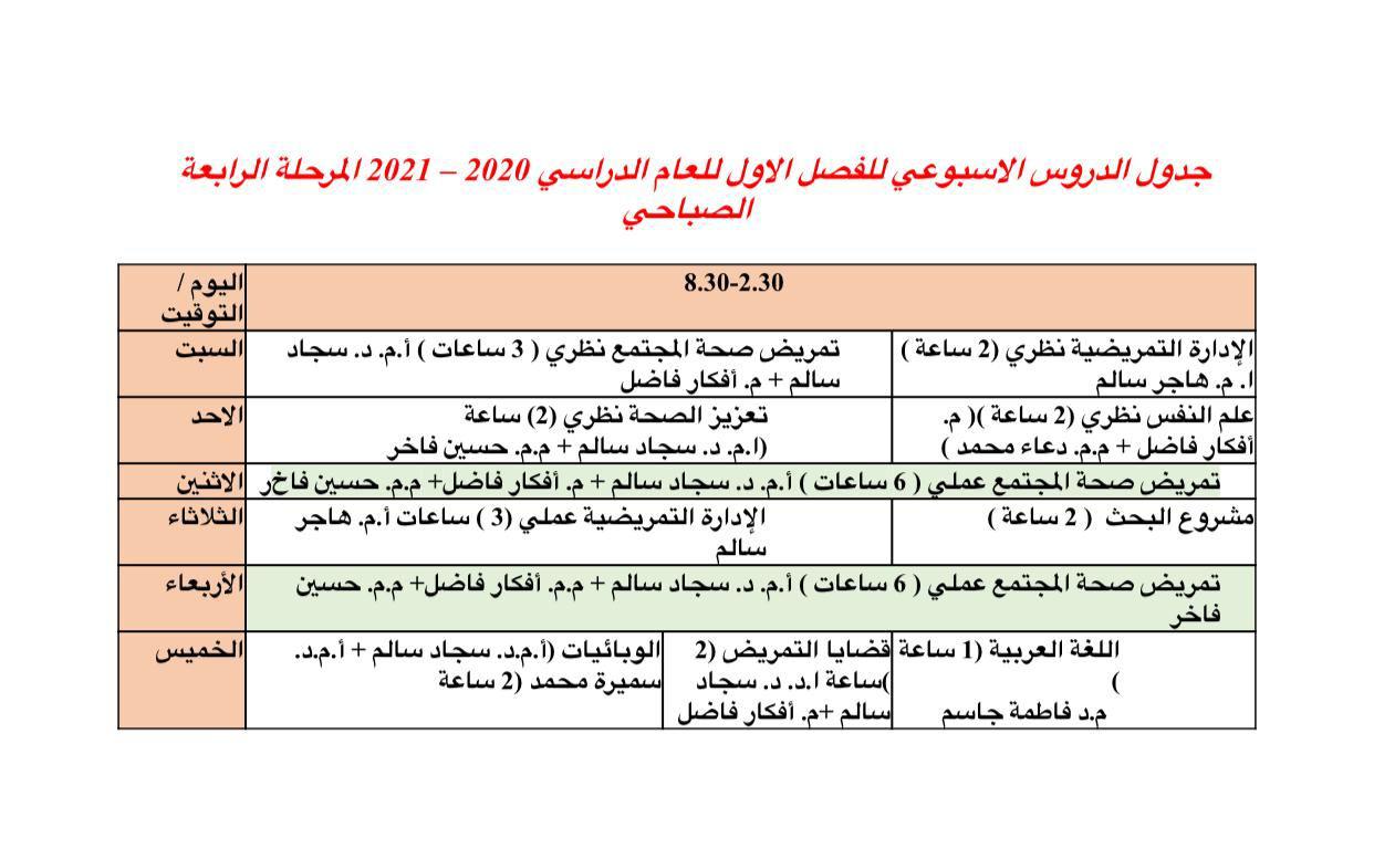 (The practical and theoretical morning study schedule for the fourth stage (2020-2021