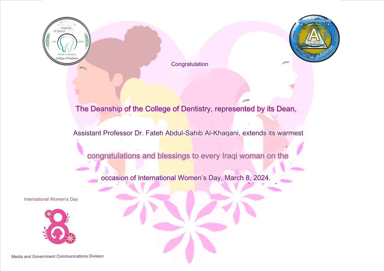 Congratulations from the Deanship of the College of Dentistry on the occasion of International Women’s Day, March 8, 2024