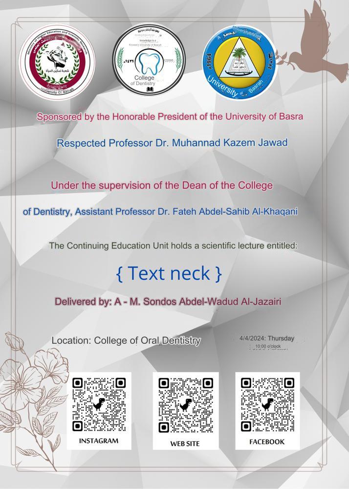 The Continuing Education Unit holds a scientific lecture entitled (Text Neck)