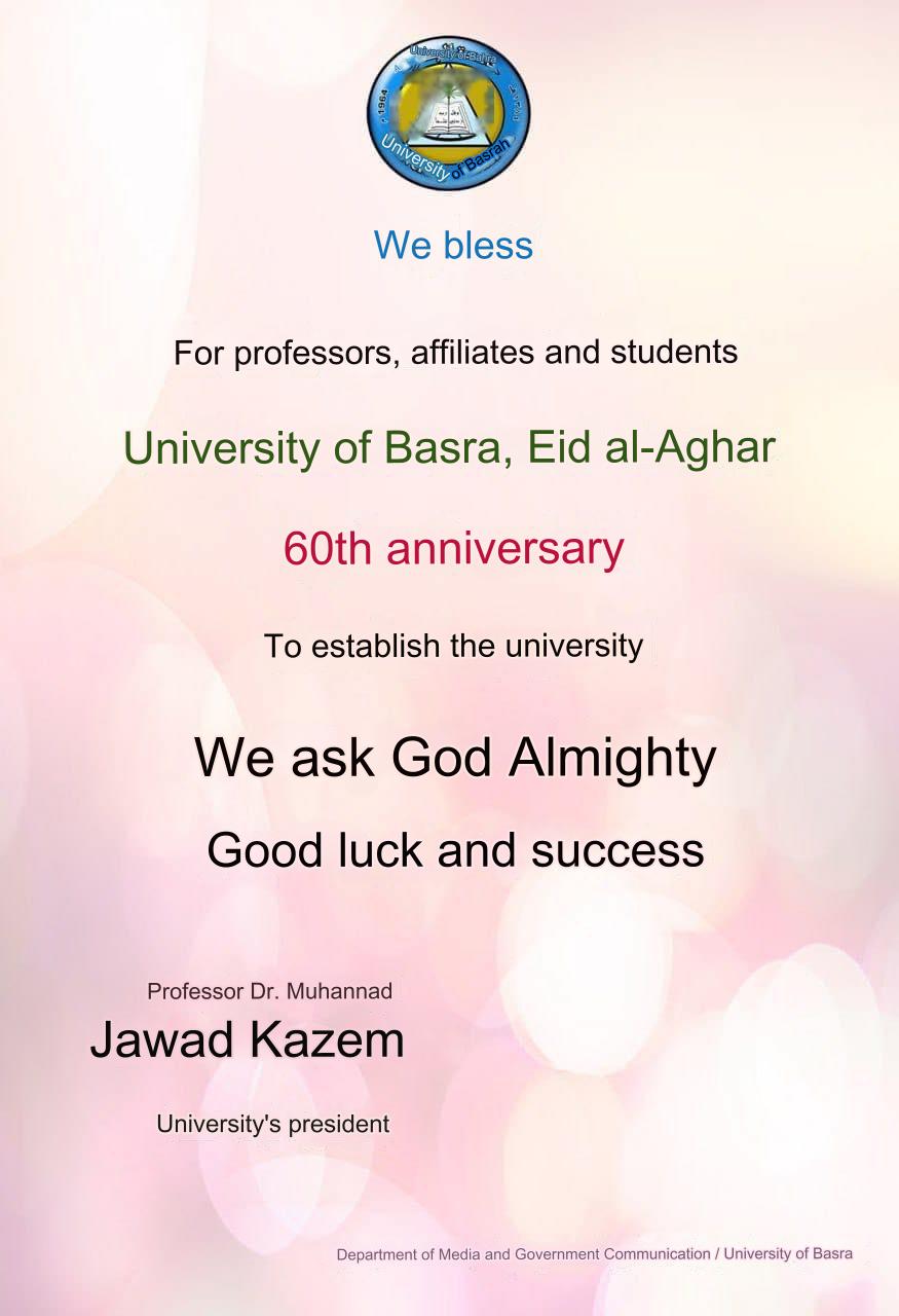 Congratulations to the President of the University of Basra on the occasion of the sixtieth anniversary of the founding of the university