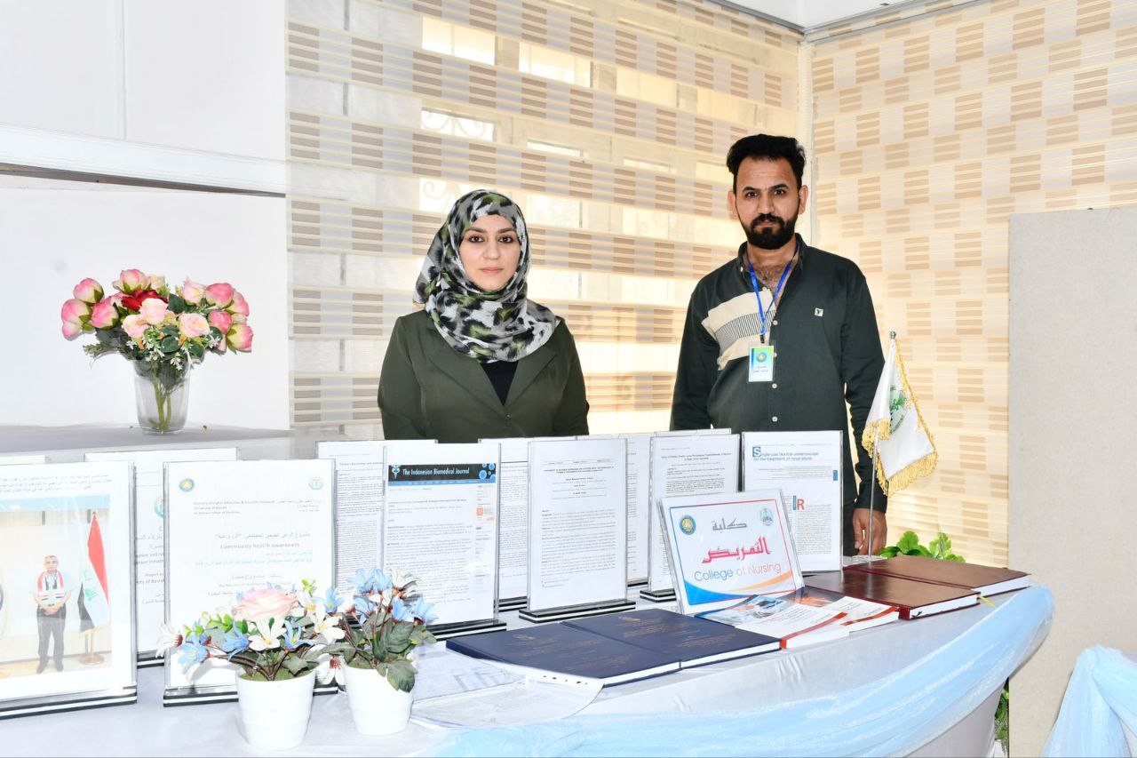 Under the patronage of the President of the University of Basra, Professor Dr. Muhannad Jawad Kazem, and with the follow-up of Assistant Professor Dr. Majid Asghar Muhammad Al-Nawab, Dean of the College of Nursing at the University of Basra, and coinciding with the 60th anniversary of the founding of the University of Basra, the exhibition of scientific products was opened in the Central Library in the Bab Al-Zubair Colleges Complex today, Wednesday, 4/4/2024. 3 As a large number of scientific, academic, political and social figures in Basra attended the opening, the scientific and humanities colleges, in addition to the research centers, participated in this exhibition. The College of Nursing had an active participation in this exhibition with a pavilion in which the college’s modern scientific products were displayed. The assistant lecturer, Zahraa Mahmoud Hussein, the head of the College of Nursing’s pavilion at the exhibition, explained that it included some scientific theses from master’s and doctoral dissertations by college professors and approximately 50 research papers published in international journals within Scopus and some Arab and international journals. Some awards and shields of excellence were also displayed for professors. College. In addition to presenting a number of graduation research papers for primary studies students.