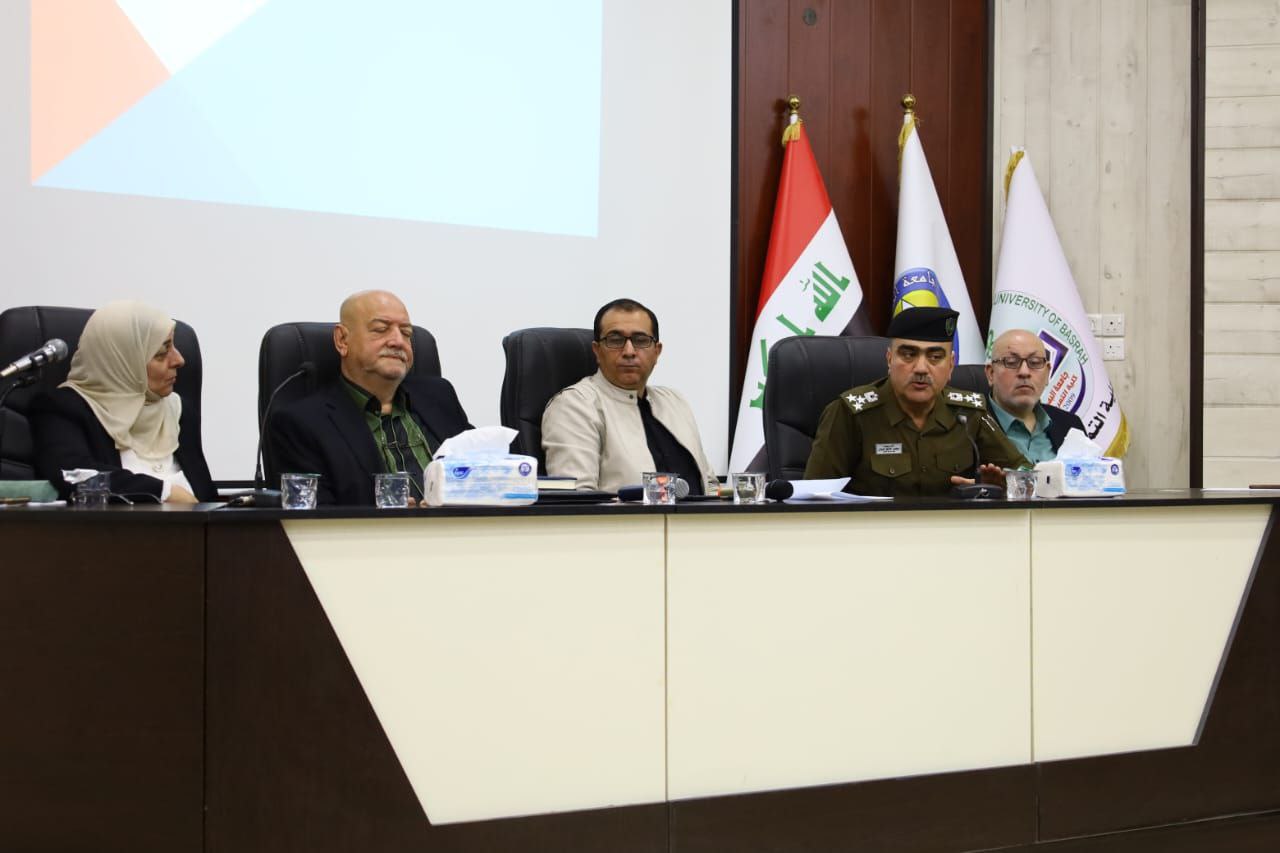 The College of Nursing at the University of Basra organized a symposium on combating the danger of drug abuse and the problem of drug addiction, in coordination with the Basra Police Command and in cooperation with the College of Fine Arts, on Tuesday, 3/5/2024, in which the jurist Brigadier Muhammad Hatem Hassan from the Basra Police Command and Professor Dr. Tariq Al-Adhari from the Basra Police Command lectured. College of Fine Arts, the teacher is Dr. Firas Abdel Qader, Head of the Community Health Branch, the teacher is Afkar Fadel Karim, the head of the Nursing Basics Branch, and the teacher is Dr. Hisham Hussein Abdel Raouf, Head of the Examination Committee.