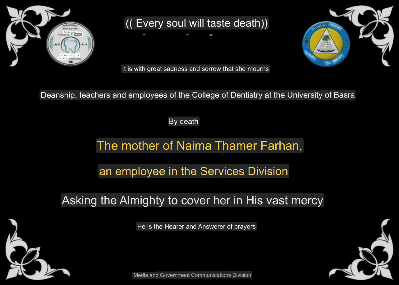 The Deanship of the College of Dentistry extends its condolences to employee Naima Thamer on the death of her mother