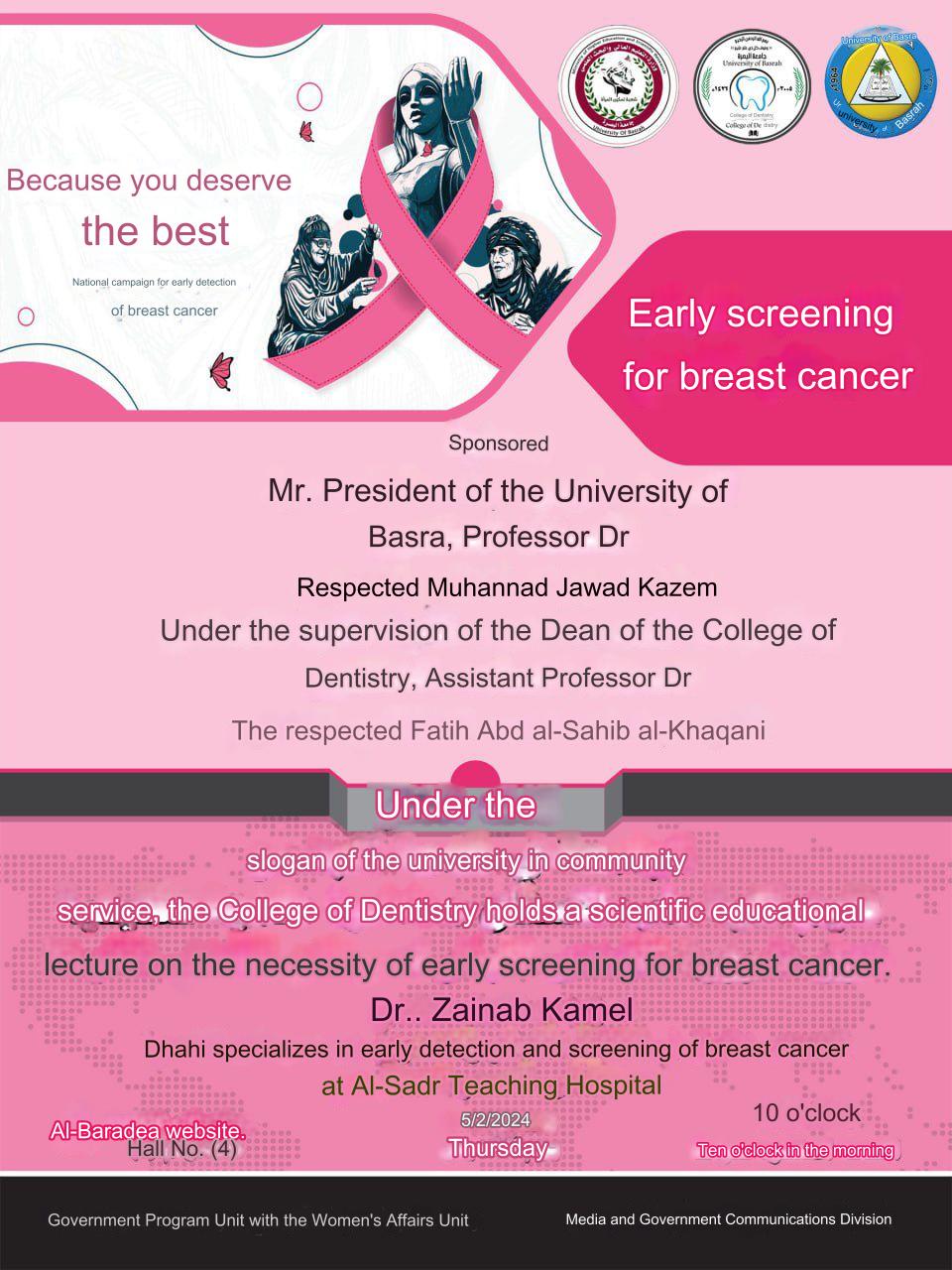 The College of Dentistry holds an educational lecture on the necessity of early screening for breast cancer