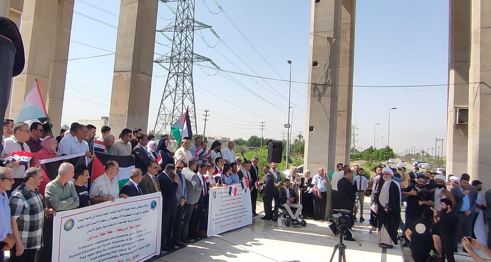 The Polymer Research Center organized a stand at the University of Basra in solidarity with our people in Gaza, where it was decided to stop official working hours for an hour from nine to ten in the morning, and it was in the presence of the President of the University of Basra, Dr. Muhannad Jawad Al-Assadi, along with all of our teaching staff and employees at the center in the stand against the Zionists in support of our people in Gaza.