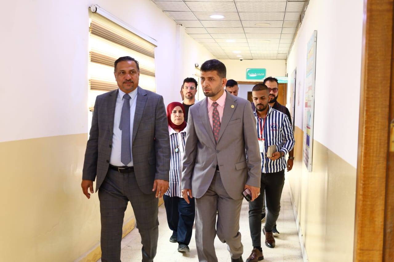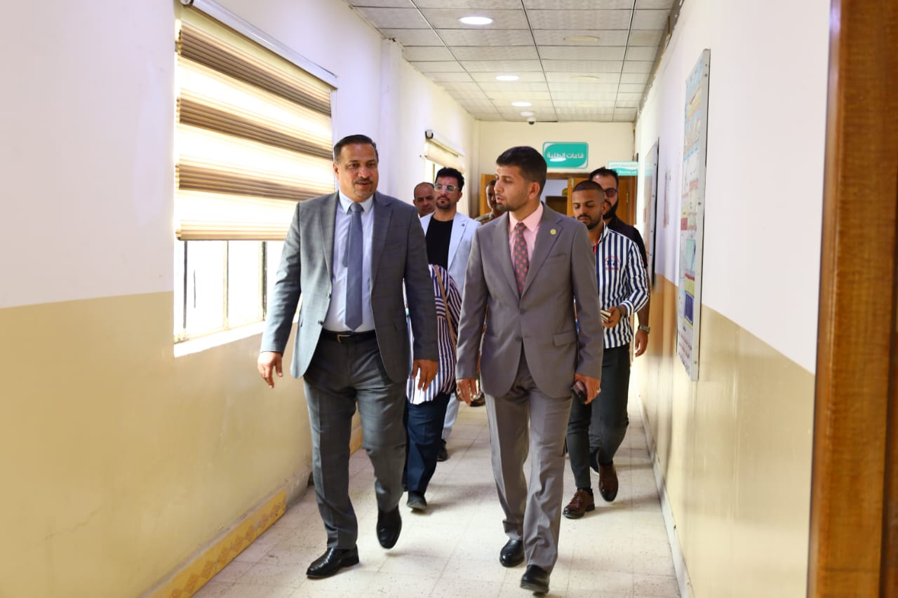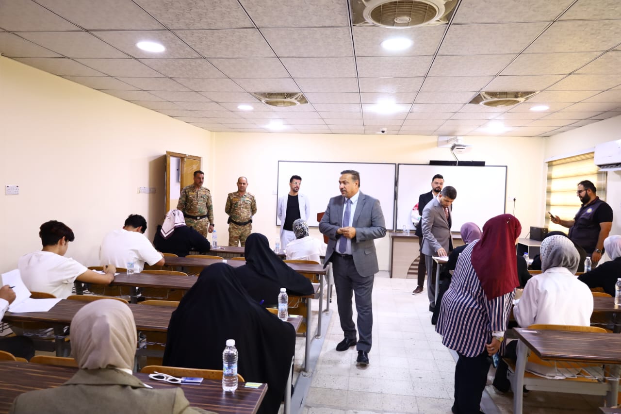 The Dean of the College of Nursing at the University of Basra, Assistant Professor Dr. Majid Asghar Muhammad Al-Nawab, follows up on the progress of the final exams, accompanied by Professor Dr. Shaker Shukri, Director of Student Affairs, and in the presence of Assistant Professor Dr. Sondos Baqir Daoud, Assistant Dean for Scientific Affairs. He also followed the procedures followed during the exam. Al-Nawab gave a detailed explanation of the nature of The college’s work and the process of taking exams there. At the conclusion of the visit, Professor Dr. Shukri Shaker praised the efforts made by the college’s dean’s faculty, staff, and students. He also stressed the importance of continuing on this path in order to ensure achieving high results in the service of our dear university.