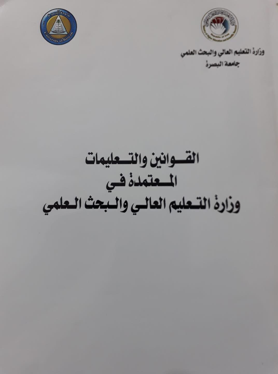 جامعة البصرة تصدر كتابا عن القوانين والتعليمات المعتمدة في وزارة التعليم العالي والبحث العلمي