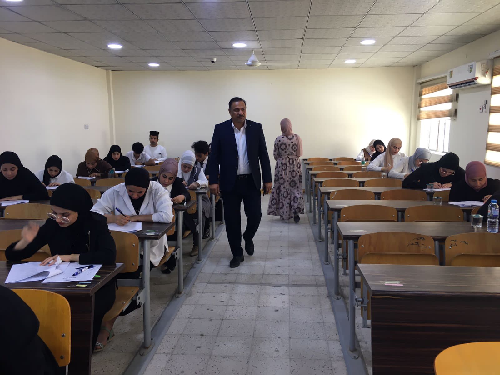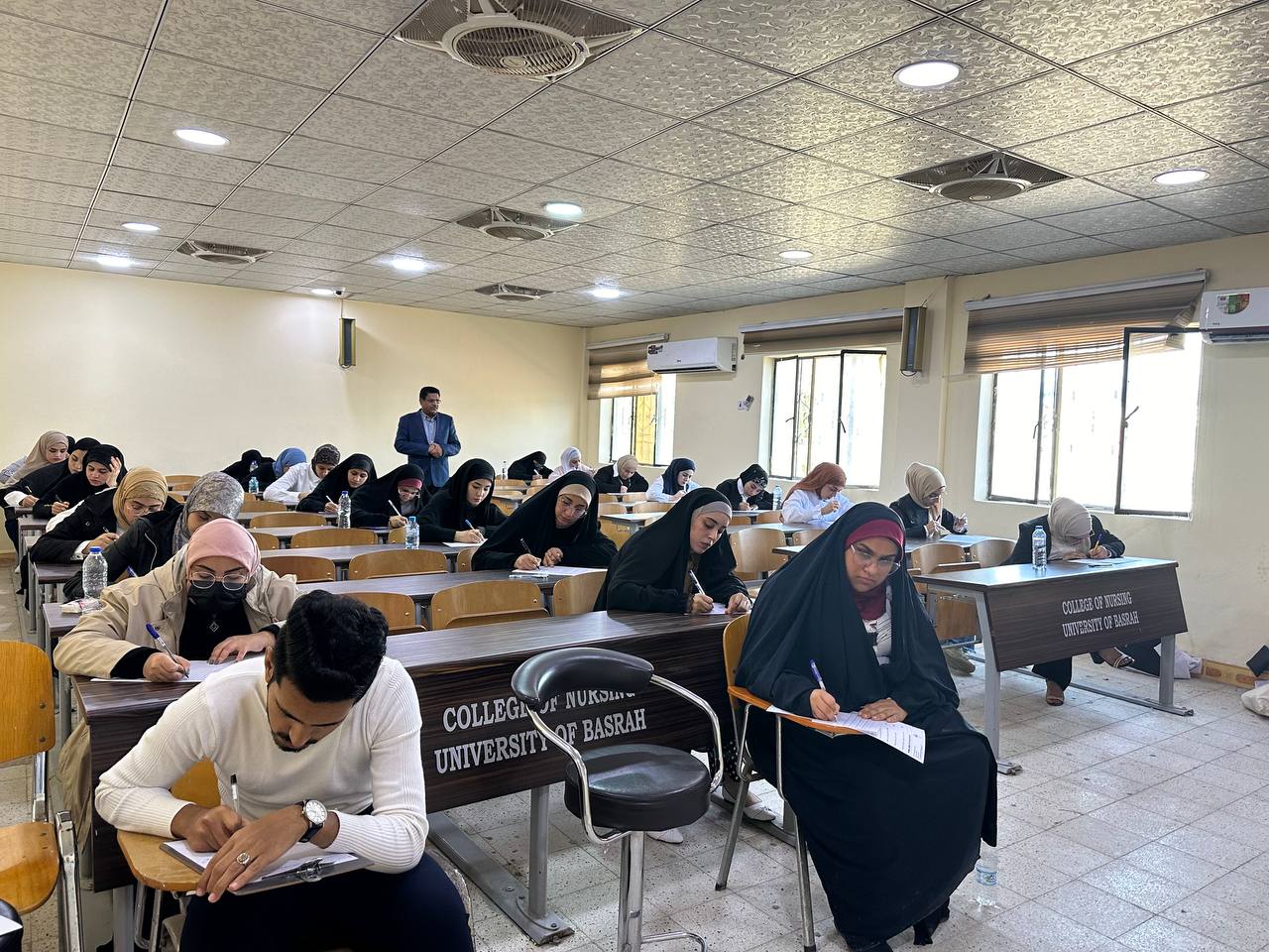 Under the direct supervision of Assistant Professor Dr. Majid Asghar Muhammad Al-Nawab, Dean of the College of Nursing at the University of BasraThe final exams for students of the College of Nursing for the academic year 2023/2024 for all levels of study were concluded, which took place according to the university calendar of the Ministry of Higher Education and Scientific Research and according to the schedules prepared by the Deanship of the College.At the conclusion of the physical examinations, Assistant Professor Dr. Majid Asghar Muhammad Al-Nawab, Dean of the College of Nursing at the University of Basra, praised the efforts made by the assistants, the Chairman of the examination committee and its members in the college, and the teaching and administrative staff for their efforts to ensure the success of the examination process and their endeavor to provide all the necessary requirements and supplies, which enabled our students. To perform their exams in an appropriate atmosphere and with high fluency,