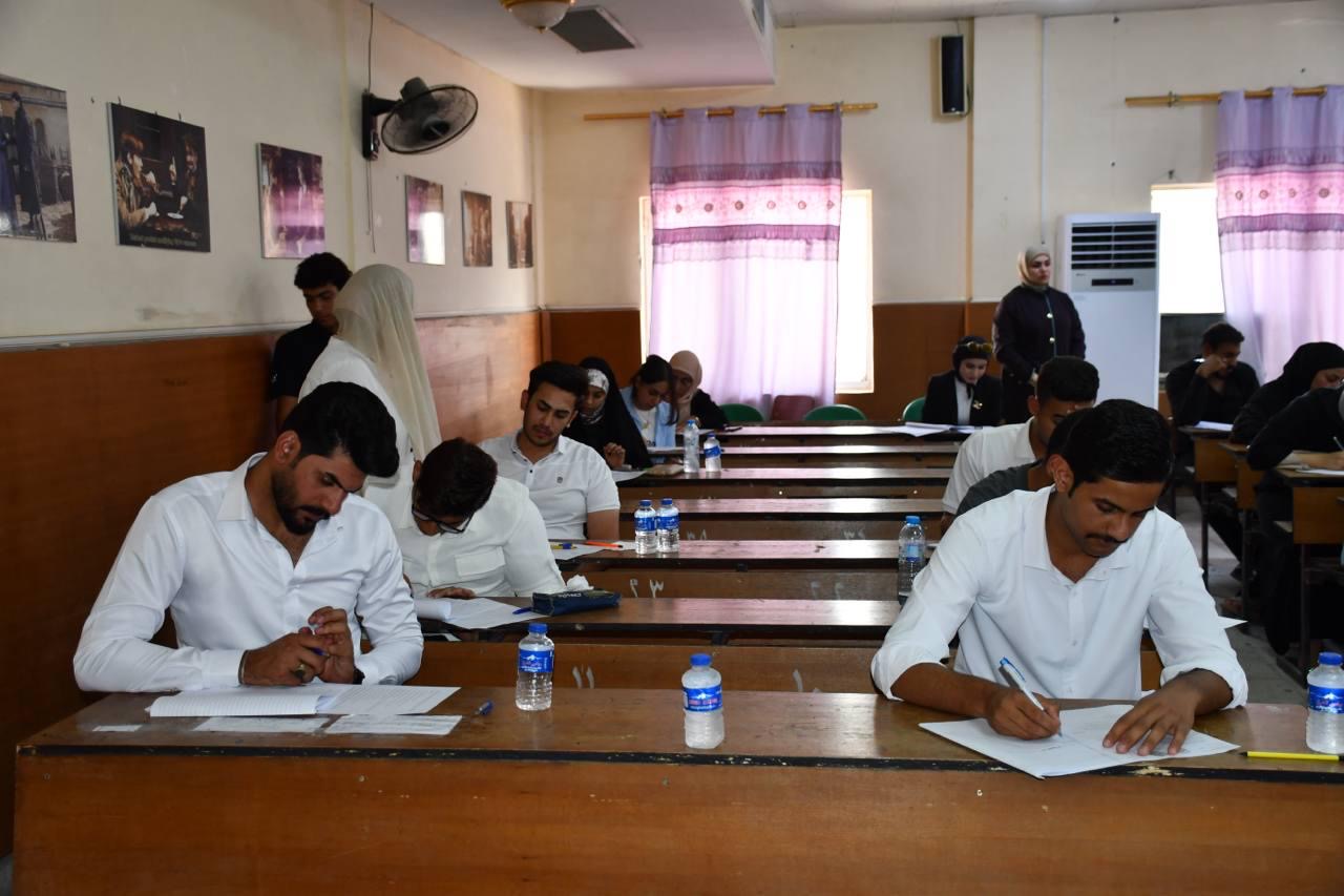 The Dean of the College, Professor Dr. Nidaa Muhammad Baqir, followed up on the progress of the exams, the organization of the halls, the type of questions, and the extent to which they observed ministerial controls and instructions, stressing the commitment to attendance at the specified times for the exams.