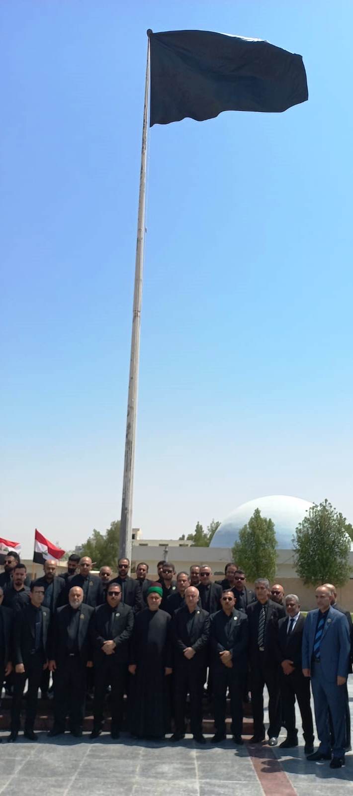 Dr. Zainab J.Sweah participated with some of the teachers of the Polymer Research Center at the University of Basrah. In the ceremony of raising the flag of Imam Hussein (peace be upon him), which took place at the University of Basrah in cooperation with the General Secretariat of the Holy Shrine of Hussein and in the presence of the President of the University of Basrah, Professor Dr. Muhannad Jawad Al-Asadi, a number of deans of colleges, and a group of university professors and employees, in addition to a special delegation from the Shrine of Hussein.