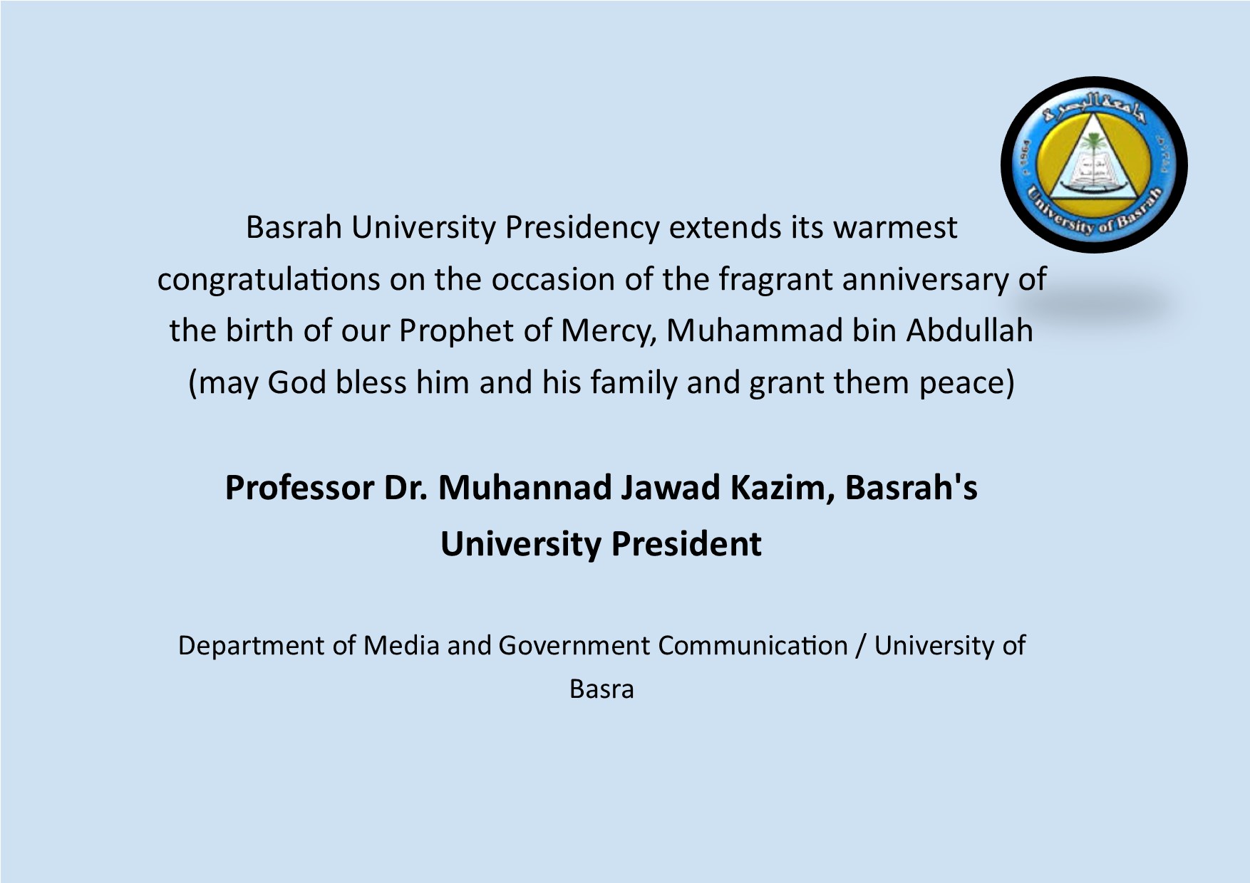 Congratulations from the Presidency of the University of Basra on the occasion of the birth of the Prophet (PBUH)