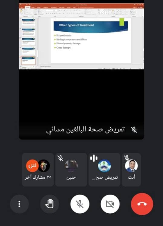 Within the direct follow-up of Professor Dr. Abdul Ameer Abdullah Al-Mousawi, Dean of the College, especially the theoretical electronic teaching and the sudden entry to the electronic class, an adult nursing lecture for the second phase of the evening study was entered, and after the completion of the lecture, some directions were given to the professor of the subject, as well as the students, and emphasis was placed on attending the lecture as well as that interaction takes place. Between the teacher and the students. |