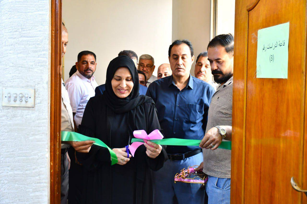 The Dean of the College of Education for Humanities at the University of Basra, Prof. Dr. Nidaa Mohammed Baqer, opened scientific laboratories and classrooms as part of her efforts to develop the college's infrastructure. The Dean of the College said, "The opening of the laboratories after equipping them with modern devices comes within the project to develop the college's infrastructure and is one of our top priorities to develop an appropriate educational environment to link the theoretical side with the practical side and develop and refine skills to improve university outcomes and employ all the college's resources in serving students and in a way that serves the advancement of their minds. Dr. Nidaa explained, "The college has equipped the computer lab with more than 50 new computers and equipped it with all the required supplies such as modern chairs, lighting and air conditioning devices, in addition to rehabilitating the Arabic Language Department hall for meetings and the Geography lab, and is about to open three new halls soon." The opening of the laboratories and halls was attended by the Dean's assistants for scientific and administrative affairs and heads of scientific departments