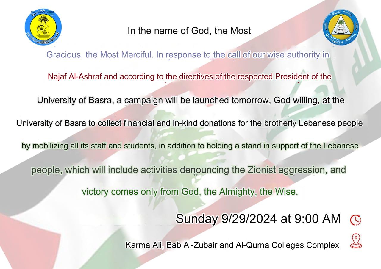 Call for a campaign to collect financial and in-kind donations for the brotherly Lebanese people