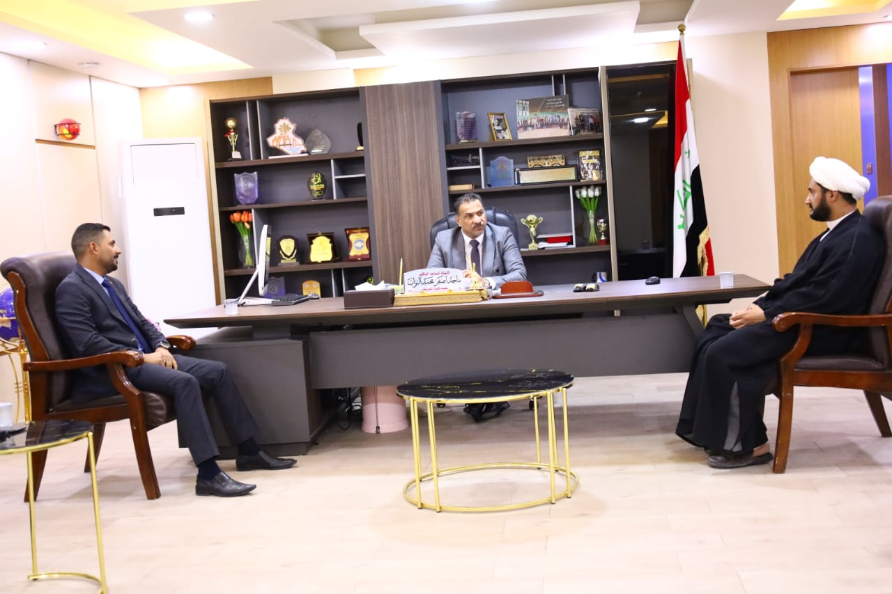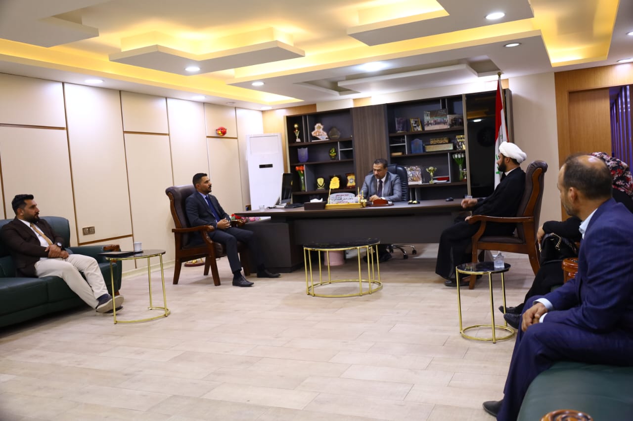 The College of Nursing at the University of Basra received a delegation from the Holy Shrine of Imam Hussein in Basra, and they were received by Assistant Professor Dr. Majid Asghar Muhammad Al-Nawab, Dean of the College of Nursing at the University of Basra.The meeting included discussions on establishing a Quranic camp sponsored by the University of Basra for Quranic work, which is adopted by Iraqi universities and ways to advance their Quranic reality, especially after the great turnout witnessed by religious activities and events from various academic and student segments of society and others.Al-Nawab stressed the importance of joint cooperation between the University of Basra and the Holy Shrine of Imam Hussein and Al-Abbas and providing support for holding lectures, religious seminars and Quranic work in particular, and in developing the Quranic reality and all religious activities, as it is one of the most important basic parties in activating the Quranic and religious movement in Iraq.