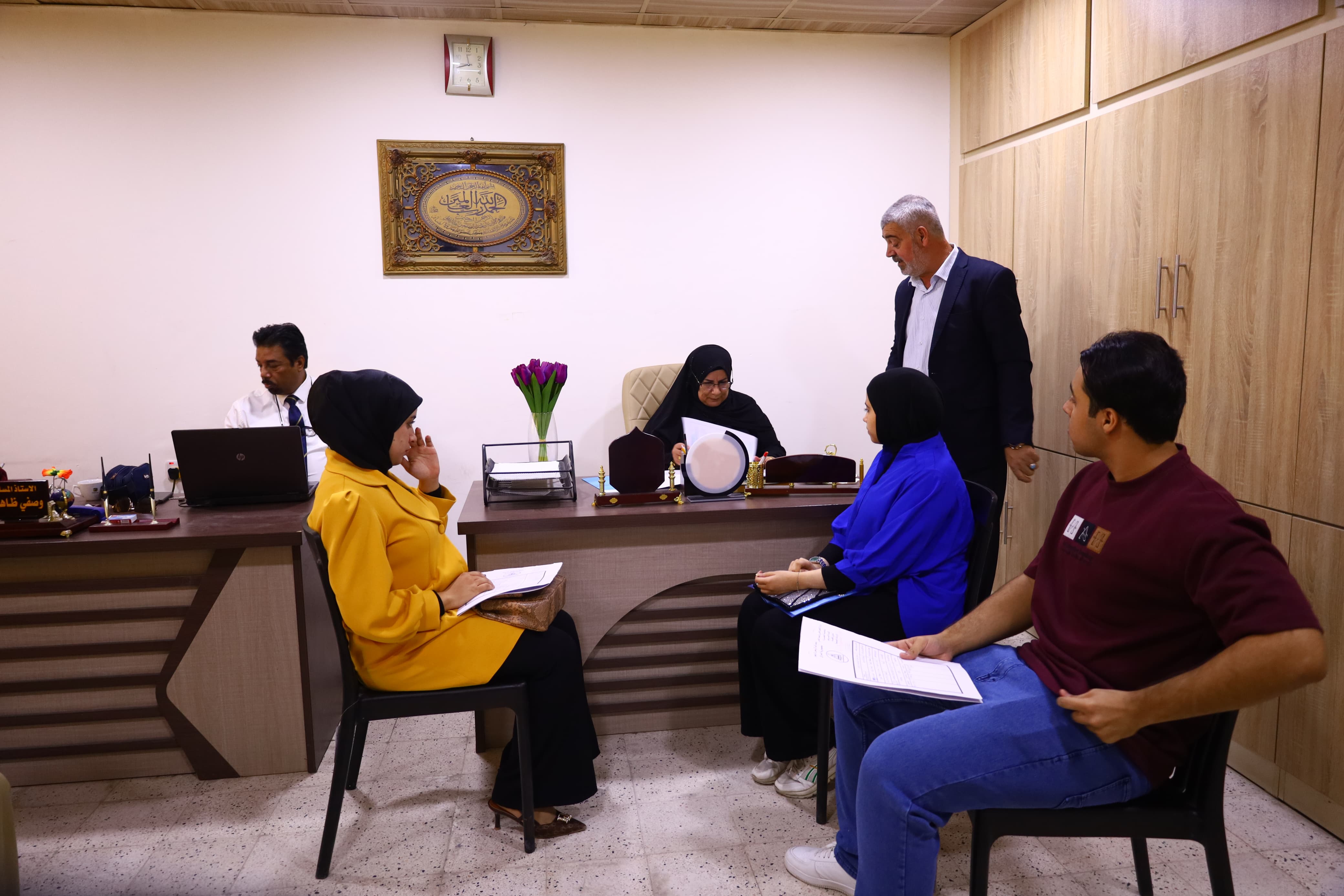 Under the direct guidance of Assistant Professor Dr. Majid Asghar Muhammad Al-Nawab, Dean of the College of Nursing at the University of Basra, and with the follow-up of Assistant Professor Dr. Sundus Baqir Dawood, Assistant Dean for Scientific Affairs, and Director of Student Affairs and Registration, Lecturer Muhammad Kazim Mutasher, the cadres of the Registration Department and the committees formed in our college began receiving and registering new students accepted for initial studies through the central admission channel and direct admission (general, martyrs' families, elite channel) for the academic year 2024-2025.Assistant Professor Dr. Sundus Baqer Dawood, Assistant Dean for Academic Affairs, confirmed that the reception of students is organized by handing applicants a serial number to ensure entry and the application process is carried out directly, in addition to the presence of committees that follow up on the safety of applicants and provide them with comfort. She also indicated that the work plan has been divided into several groups, the first of which is specialized in registering accepted students, verifying their names, and giving them the application file, which contains (a written pledge, a medical examination form, a document request), while the second group is given a username and a password in the student management system so that the applicant can fill in his data within the system, while the third group works on verifying the data entered in the student management system, focusing on the accuracy of data entry, the most important of which is (the correctness of the student’s name, the examination number), as it is used as a username for the student in the student management system.