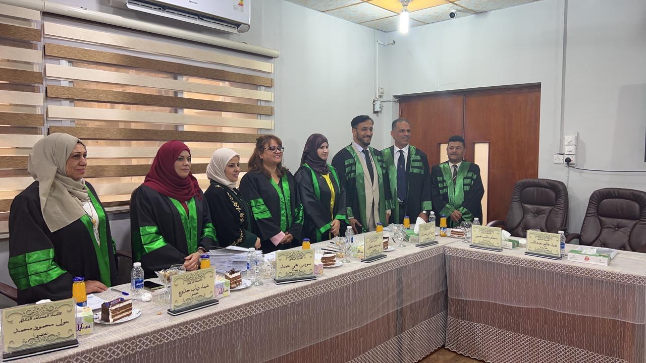 The College of Nursing at the University of Basra participated in discussing a doctoral thesis in the hall of the College of Agriculture, Department of Food Sciences, for graduate student Iman Hadi Awda for her thesis entitled Extracting the enzyme miro sinase from locally produced broccoli in Basra Professor Dr. Sajjad Salem Issa, a faculty member at the College of Nursing and a lecturer in the Community Health Branch, was chosen as a member of the discussion The study aims to know the effect of sulforaphane on eliminating cancer cells, especially colon cancer, and extracting it as a useful substance for cancer patients.