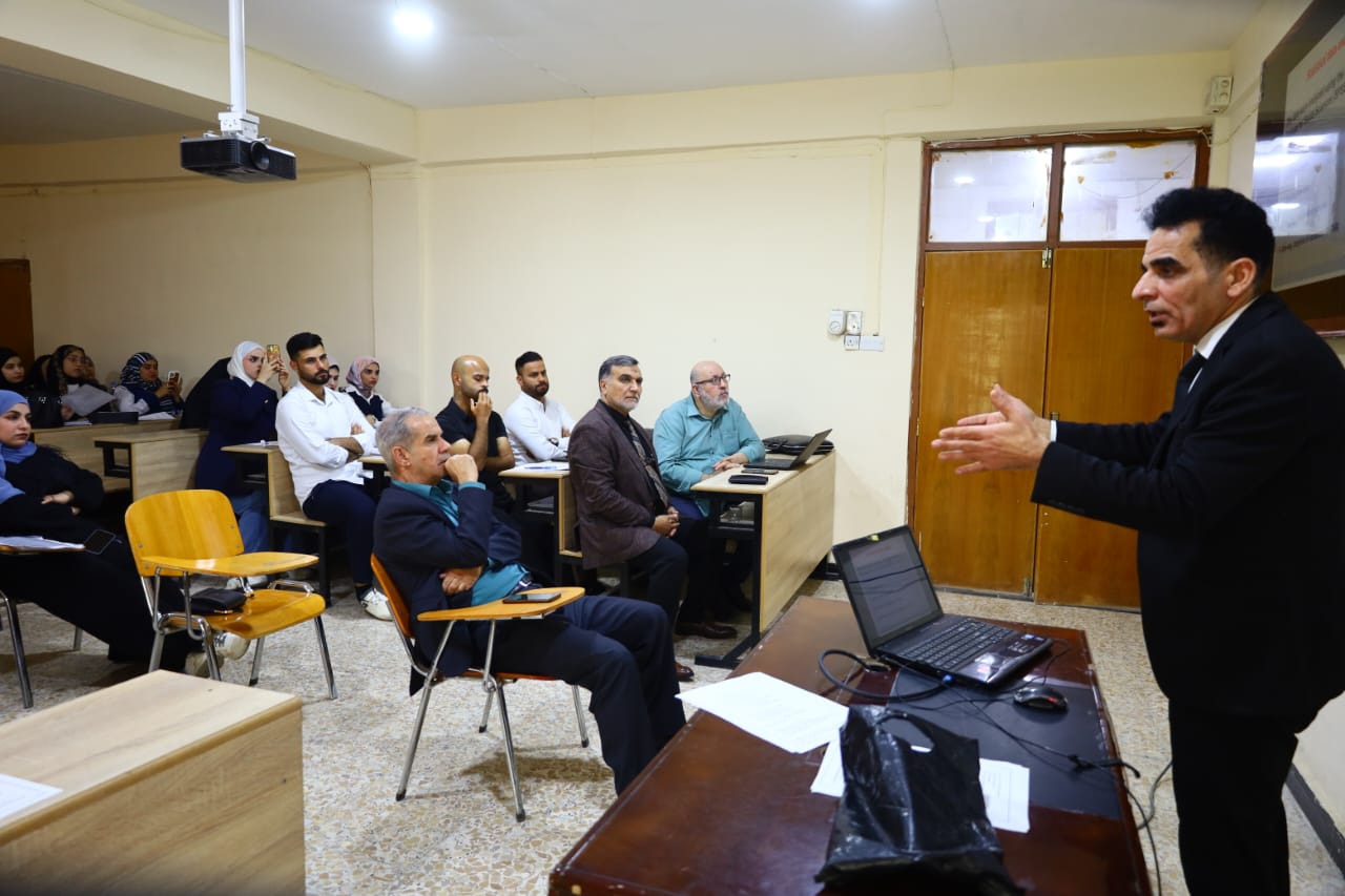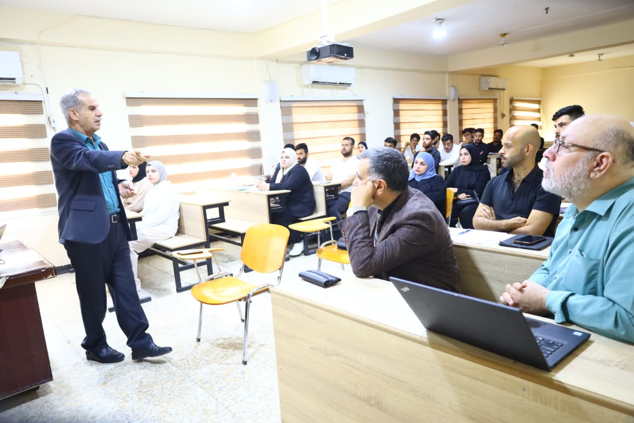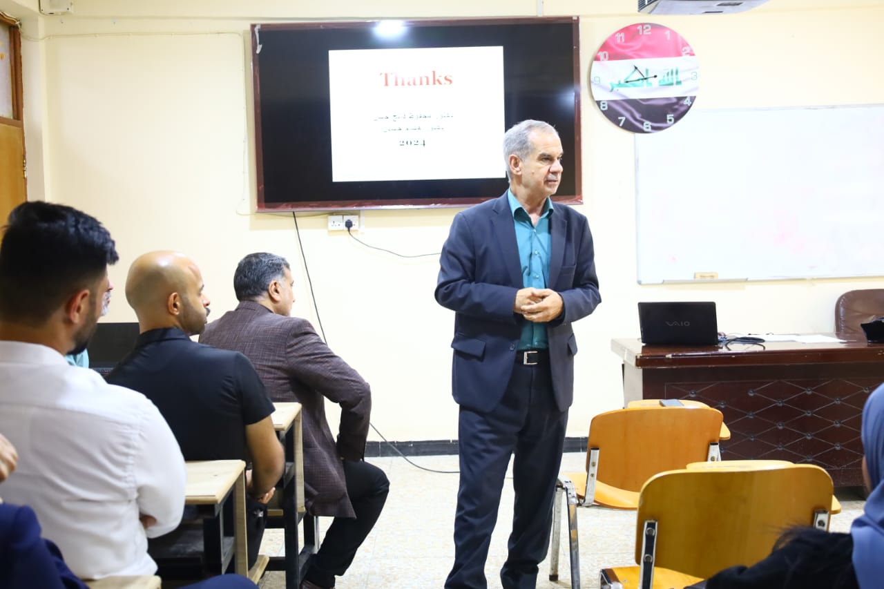 Under the patronage of the President of the University of Basra, Prof. Dr. Muhannad Jawad Kazim, and under the supervision of the Dean of the College of Nursing at the University of Basra, Assistant Professor Dr. Majid Asghar Muhammad Al-Nawab The Continuing Education Unit at the college organized a scientific lecture on writing and organizing a graduation research for fourth-year students. Professor Dr. Mahfouz Faleh Hassan lectured in it, with the participation of Assistant Professor Dr. Abdul Karim Salman and Lecturer Dr. Hisham Hussein Abdul Raouf, members of the faculty of the college The lecture dealt with a detailed method on how to write research in a professional manner and the correct way to write chapters of graduation projects, in addition to solving problems related to understanding the mechanism of writing projects, and expanding students' awareness of understanding the graduation project and the limits of the general idea of the project.