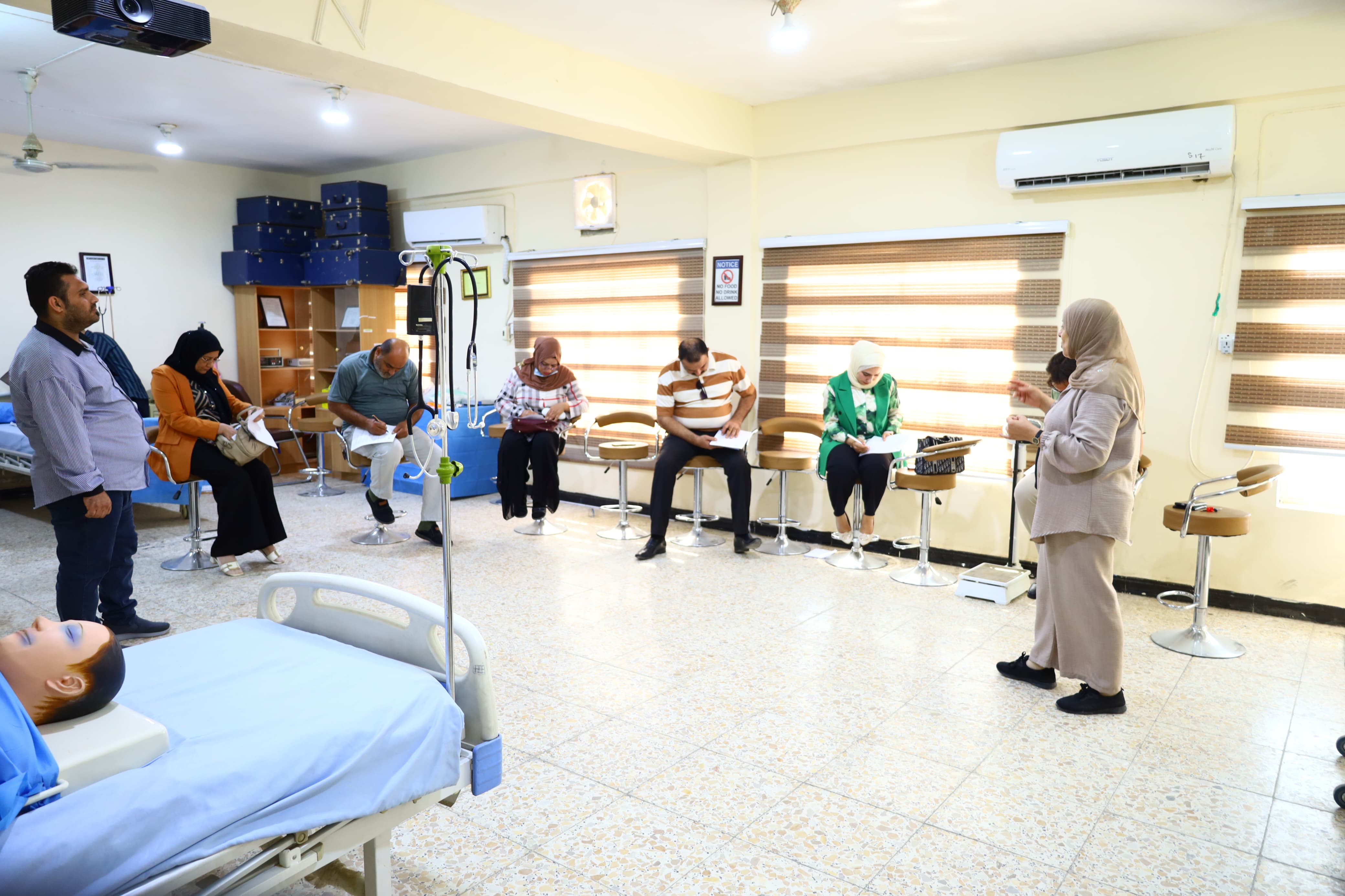 Under the patronage of the Dean of the College of Nursing at the University of Basra, Professor Dr. Majid Asghar Muhammad Al-Nawab The work of the training course on measuring vital signs concluded today, Thursday, 11/7/2024.Organized by the College of Nursing at the University of Basra in cooperation with the Continuing Education Center at the University of Basra.For her part, Assistant Professor Dr. Sundus Baqir Dawood, Assistant Dean for Scientific Affairs, explained that the course dealt with many axes that aimed to transfer health knowledge and experiences to the participants in the course with practical application of many activities, in addition to qualifying university cadres and increasing their level of awareness on how to deal with multiple injuries and emergency cases until the arrival of the competent authorities.It is worth noting that the course presented a number of recommendations, most notably the continuation of organizing such training workshops and motivating all employees to participate in them, in addition to emphasizing the importance of spreading the culture of first aid among all employees and enhancing the role of the media in spreading health awareness of first aid and spreading correct health information among citizens.
