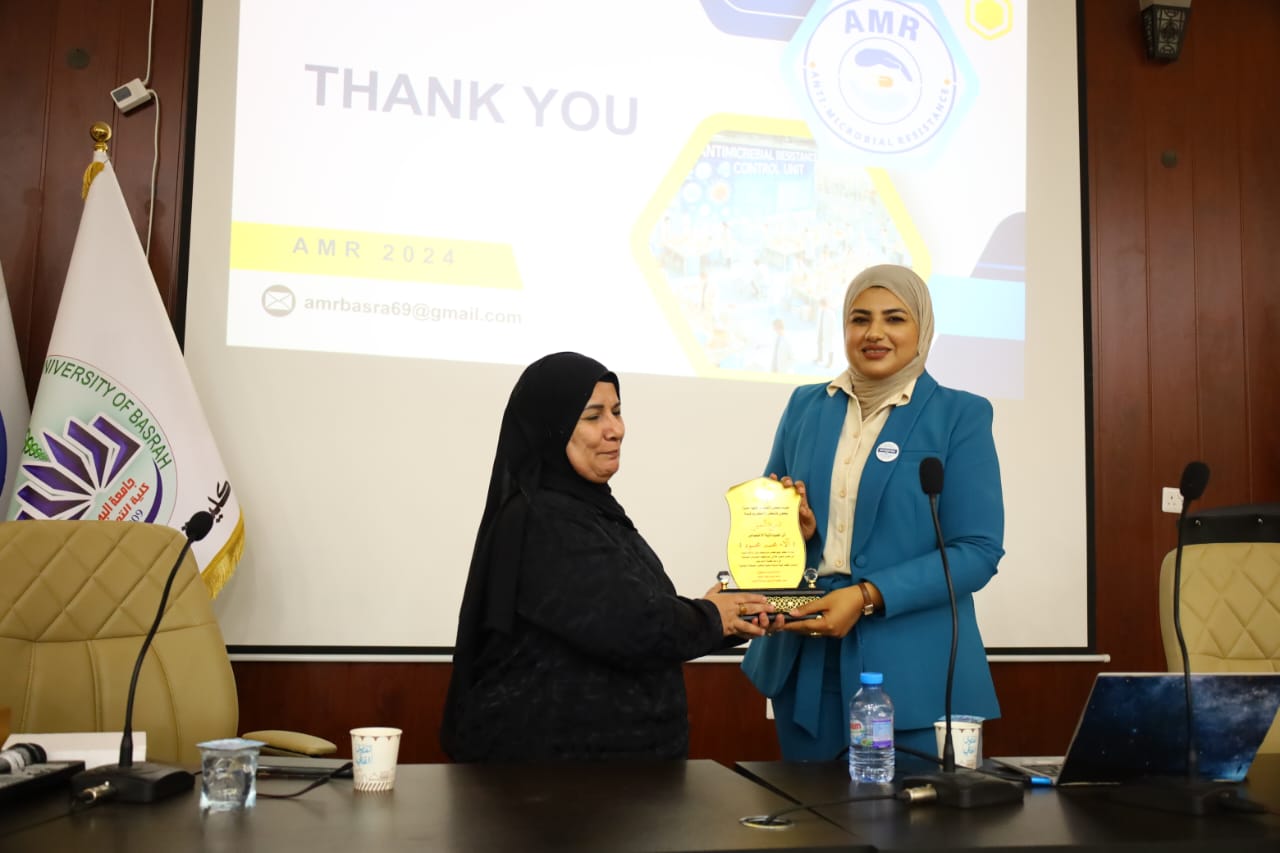The symposium included an introductory overview of the Antibiotic Control Division affiliated with the Basra Health Department and its role in educating medical cadres and students of the medical group. The symposium explained training the student to deal with medicines in conjunction with the World Antibiotic Awareness Day. During the symposium, statistics were presented that included the percentage of diseases in Basra, the basic methods for educating nursing cadres and reducing the percentage of resistance within health institutions and their effective role in this topic At the end of the symposium, the lecture was given A shield of thanks and appreciation, and the Dean praised the great efforts made in the symposium in a manner befitting the University of Basra and the College of Nursing, and in the hope of holding more events for the scientific information they add that enriches the scientific archive of the university in general and the college in particular.