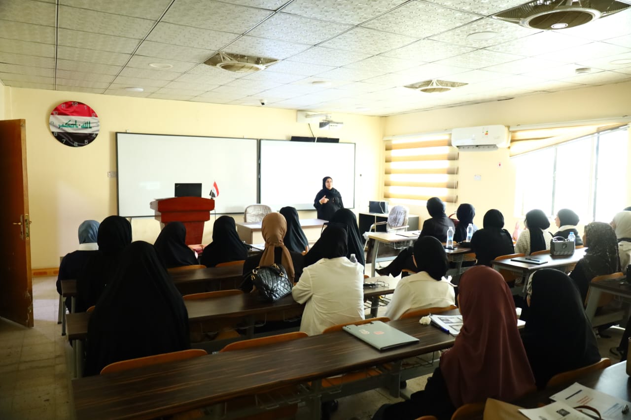 Under the patronage of the Dean of the College of Nursing, Assistant Professor Dr. Majid Asghar Muhammad Al-Nawab The Continuing Education Unit at the College organized a workshop on Polycystic Ovary Syndrome, which was lectured by Assistant Professor Dr. Sundus Baqer Dawood, Assistant Dean for Scientific Affairs The workshop dealt with defining Polycystic Ovary Syndrome as a common hormonal disorder among women of childbearing age. The workshop also addressed women who suffer from Polycystic Ovary Syndrome from intermittent or prolonged menstrual periods or increased levels of the male hormoneDr. Sundus Baqer Dawood explained that the explanation for this health condition is that it is fluid-filled cysts that accumulate on one or both ovaries, which leads to failure to release eggs regularly, stressing the side effects of Polycystic Ovary Syndrome and what are the most important causes of this disease and the importance of the type of food that helps in alleviating the complications of the problem. The workshop aimed to introduce polycystic ovary syndrome and the truth about its formation, the causes of the disease, the types of cysts that occur in women, the symptoms and complications of the disease, and methods of prevention and treatment.