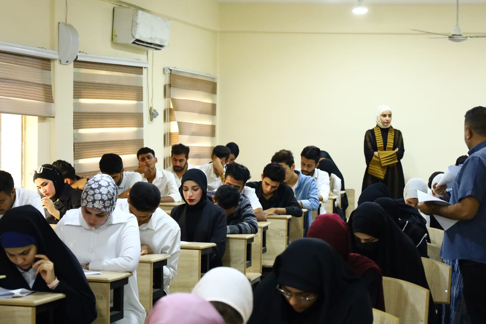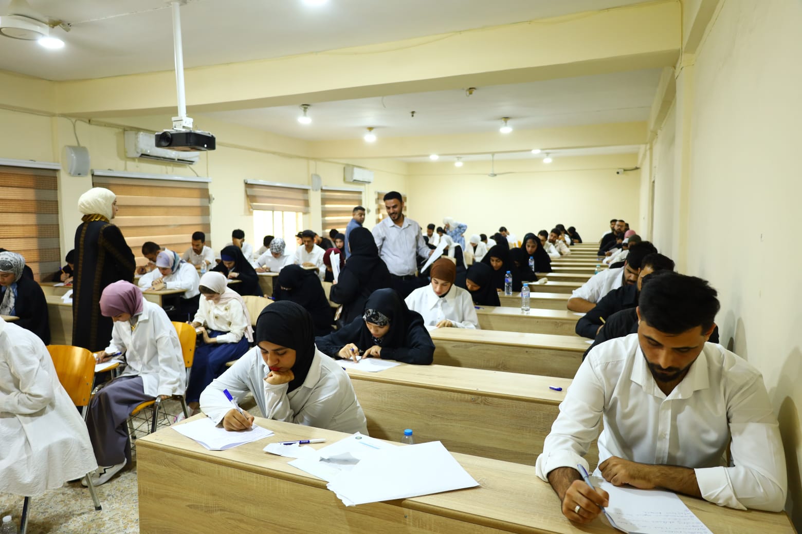 Under the supervision and follow-up of the Dean of the College of Nursing at the University of Basra, Assistant Professor Dr. Majid Asghar Muhammad Al-Nawab, and with the follow-up of Assistant Professor Dr. Sundus Baqir Dawood, Assistant Dean for Scientific Affairs Our college continues to conduct the semester exams for the academic year 2024-2025, which were conducted smoothly and with high discipline and students' commitment to the examination instructions. During the follow-up, the students' needs were reviewed and all difficulties that they may face during the exams were overcome and an appropriate examination environment was secured. He stressed the provision of all appropriate requirements to serve the students, stressing the need to take into account the wearing of the official uniform for students and the spacing between students while sitting on the examination seats.These tours come within the framework of the continuous field follow-up by the Deanship of the College in order to make the exams successful to reach the most prominent results that are consistent with the scientific and cultural level of all college students.