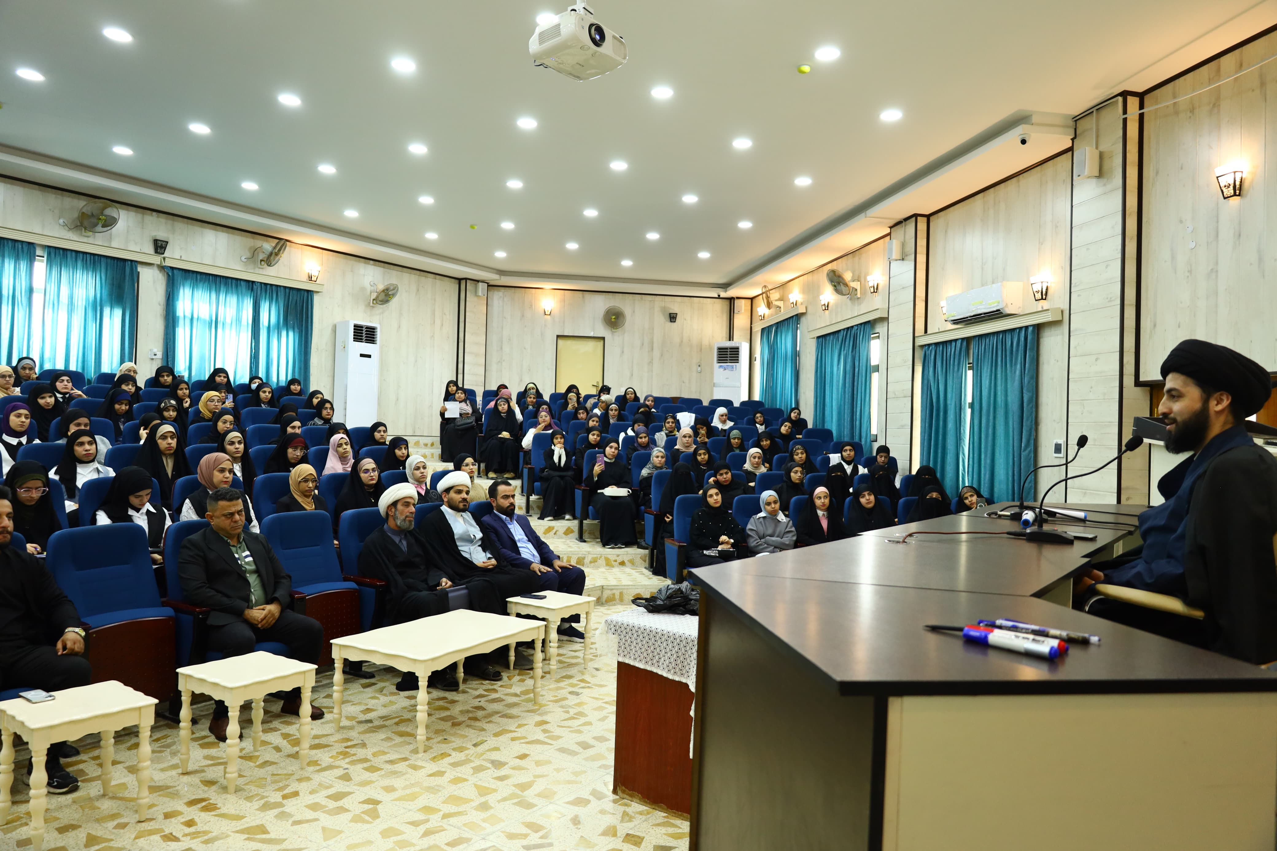 A professor at the religious seminary in Karbala. In the presence of Assistant Professor Dr. Sundus Baqir Dawood, Assistant Dean for Scientific Affairs, Lecturer Farhan Laith Aiz, Head of the Educational Guidance Unit at the college, and with the participation of His Eminence Sheikh Abu Ali al-Bawi, His Eminence Sheikh Hatem Karim, and Dr. Muhammad al-Hussaini.