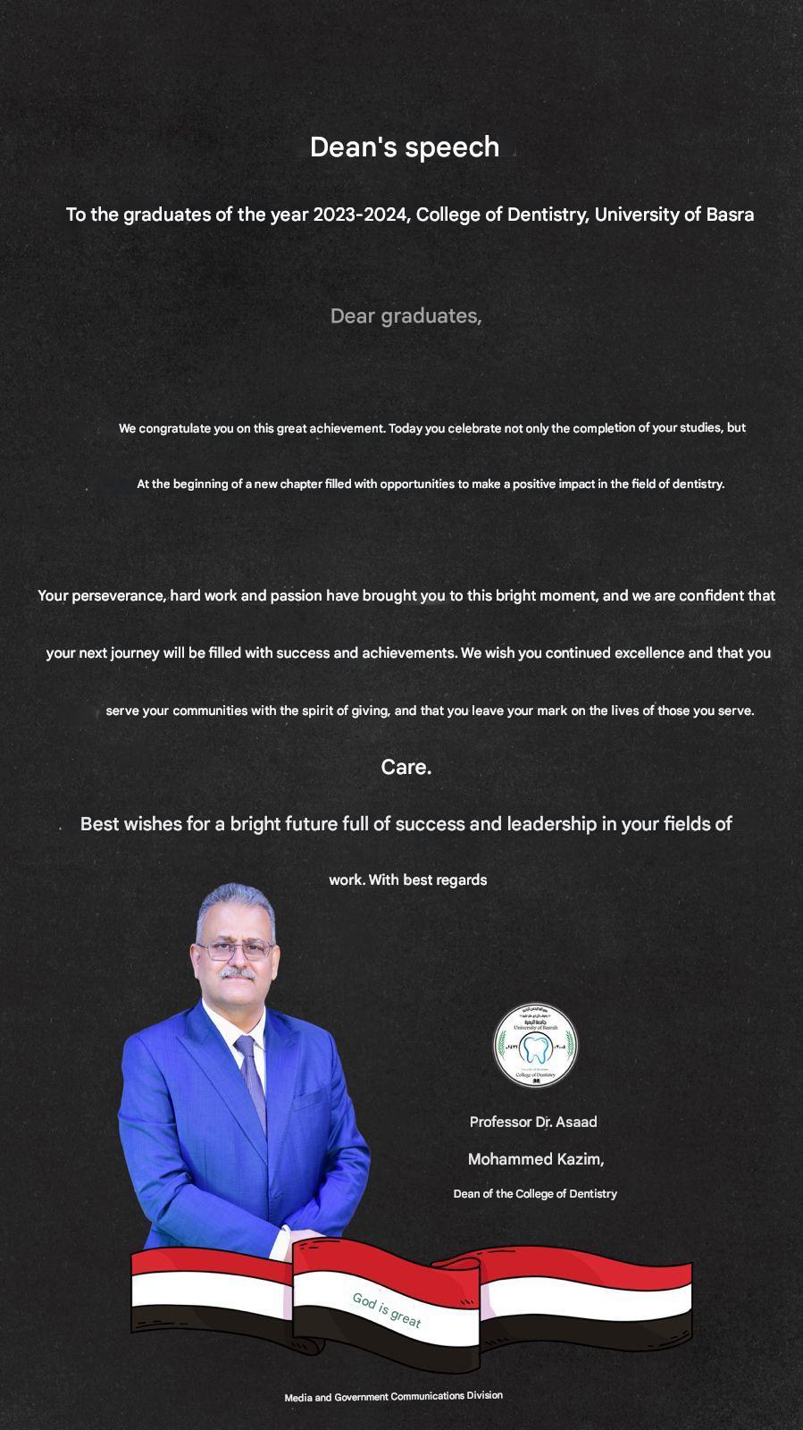 A word from the Dean of the Faculty of Dentistry to the graduates of the year 2023-2024