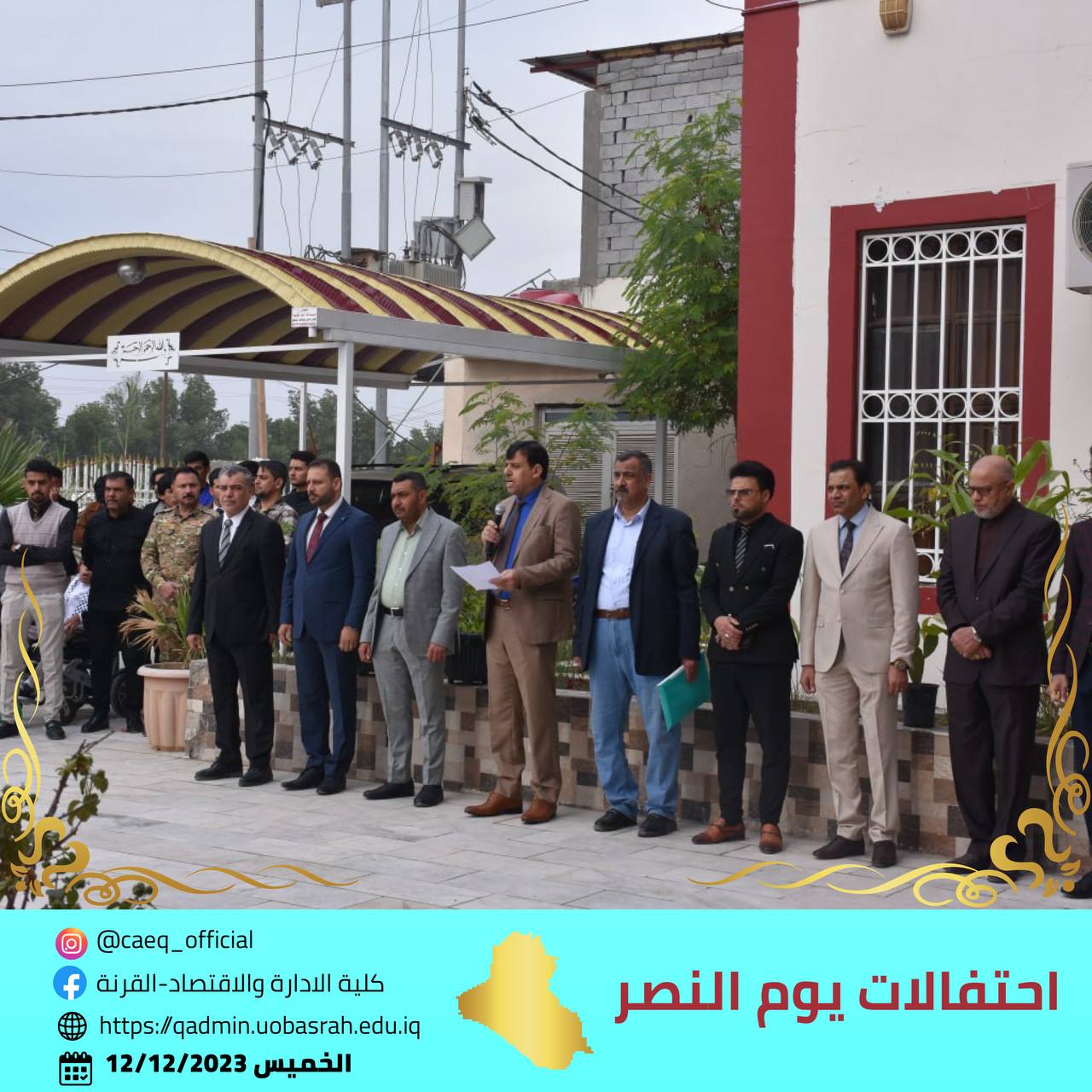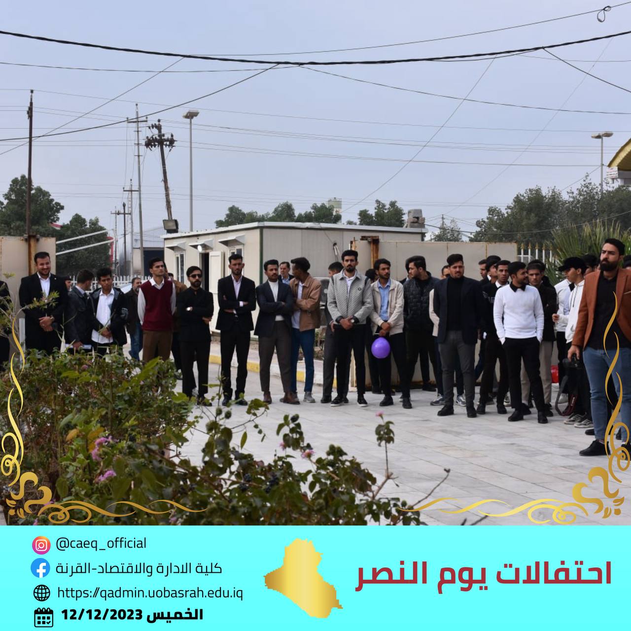 The College of Administration and Economics - Qurna, University of Basra, celebrated National Victory Day in a grand event that commemorated the heroism and sacrifices of the people of Iraq in defending their land and sacred sites.