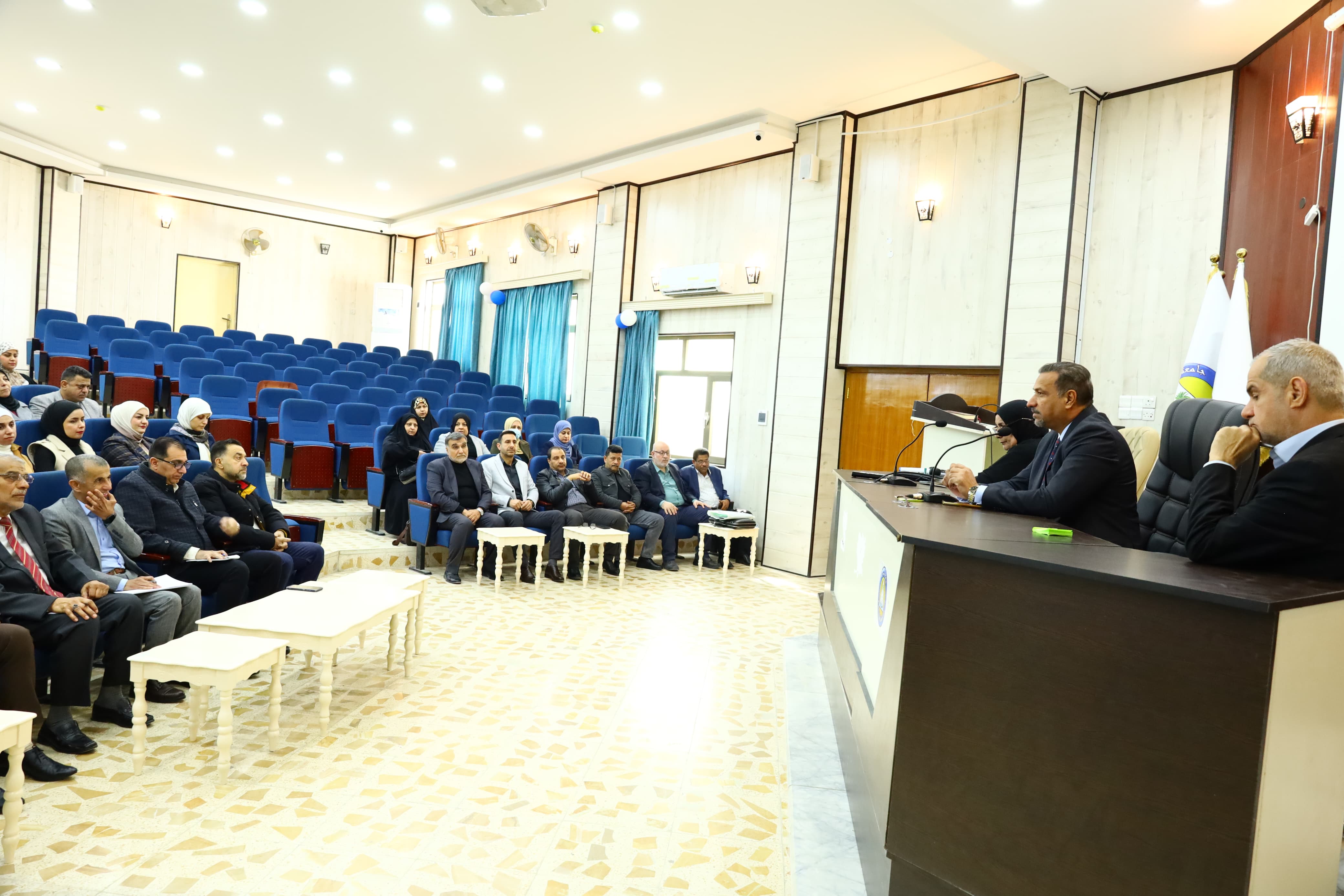 Mr. Dean of the College of Nursing at the University of Basra, Assistant Professor Dr. Majid Asghar Muhammad Al-Nawab, met with faculty members, heads of academic departments, and members of examination committees in the college.The meeting was attended by Assistant Professor Dr. Sundus Baqir Dawood, Assistant Dean for Academic Affairs, and Assistant Professor Dr. Abdul Karim Salman, Assistant Dean for Administrative Affairs.The meeting included several axes, the most important of which was the interest in the educational aspect and providing the basic requirements for the educational process.The Dean also addressed the preparation of lectures in light of the official standards in terms of commitment to the curriculum, and also focused on the need to pay attention to the relationship between the professor and the student in the educational and scientific aspects, as well as providing the student with a study atmosphere and providing all the requirements in the classrooms and laboratories. The Dean of the College praised the efforts made by the faculty members of the College. This meeting came within a series of meetings held by the Dean with the faculty members of the College. The Dean urged them to intensify and dedicate efforts and work in the spirit of one team and cooperate with each other to present a bright image of the College and the University. Emphasizing their utmost efforts to present research that would raise the scientific level and perseverance and combine scientific and administrative tasks by arranging scientific laboratories and presenting all proposals capable of raising the efficiency and level of laboratories in the College. At the end of the meeting, the representatives praised the efforts made by everyone to ensure the success of the exams and the progress of the educational process, hoping that the educational and administrative cadres would exert more effort and dedication to achieve the common goals in the service of our dear university.